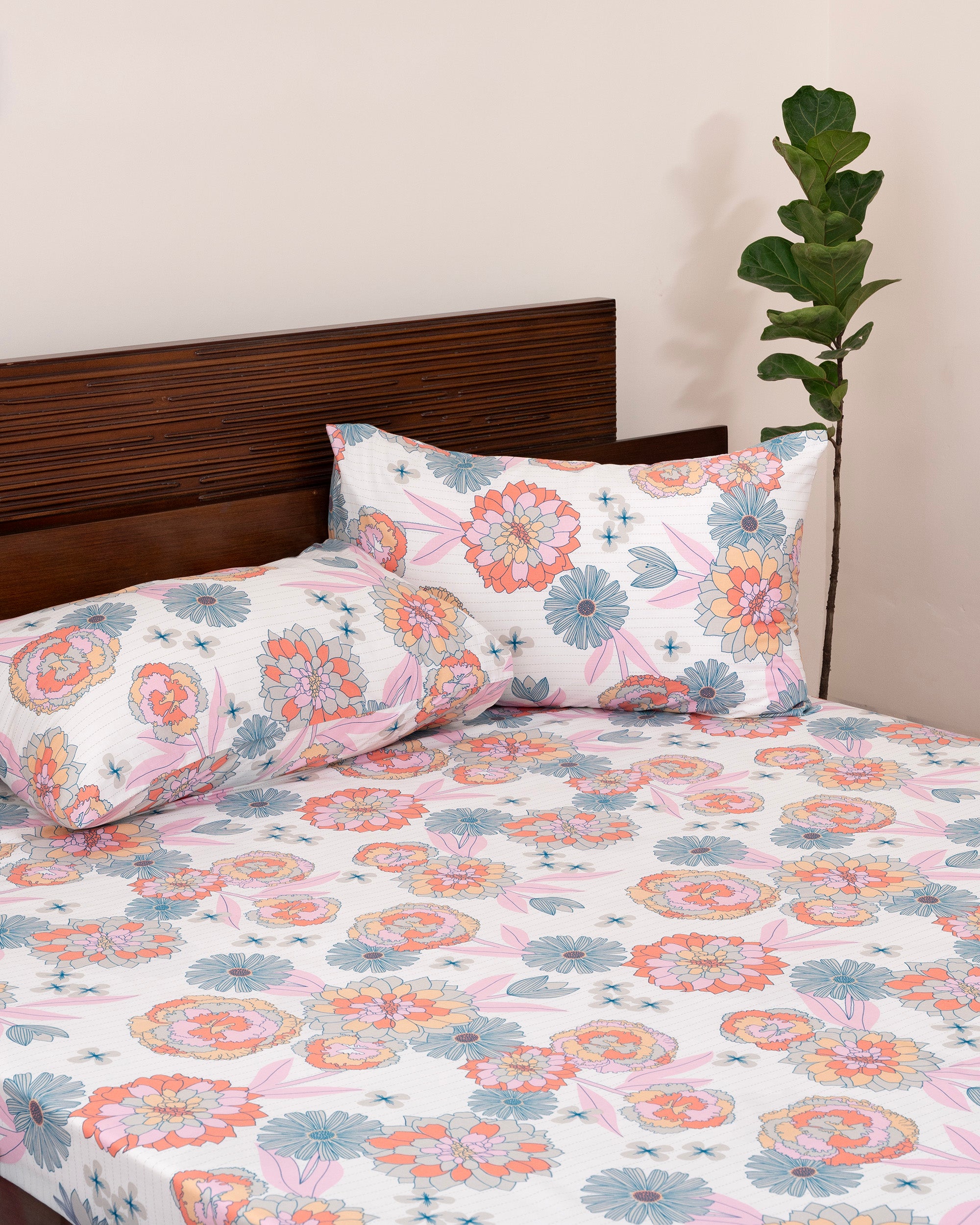 King-Size Bed Sheet - Coral Blossom