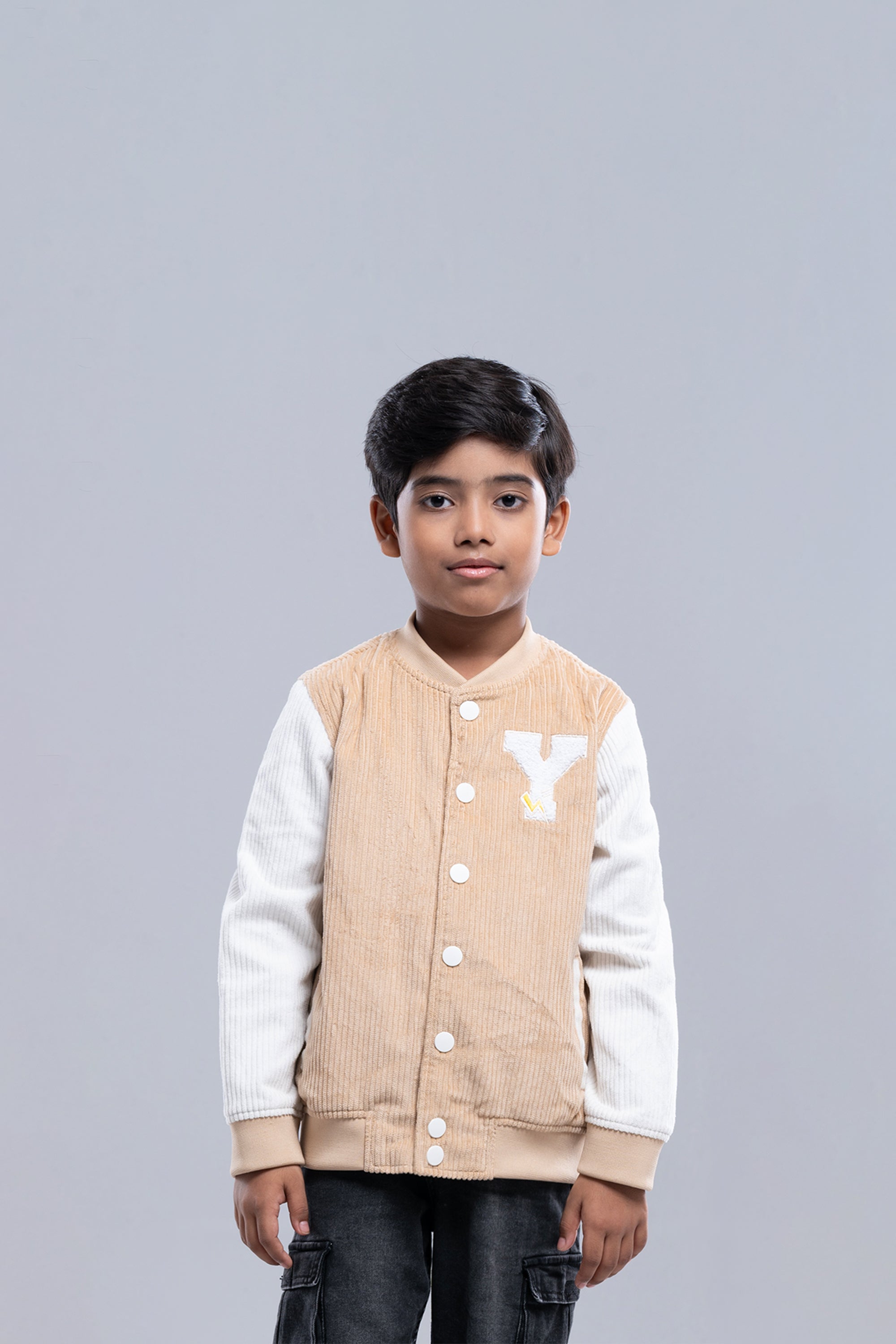 • This stylish boy's varsity jacket combines a trendy, sporty vibe with a two-tone design.
