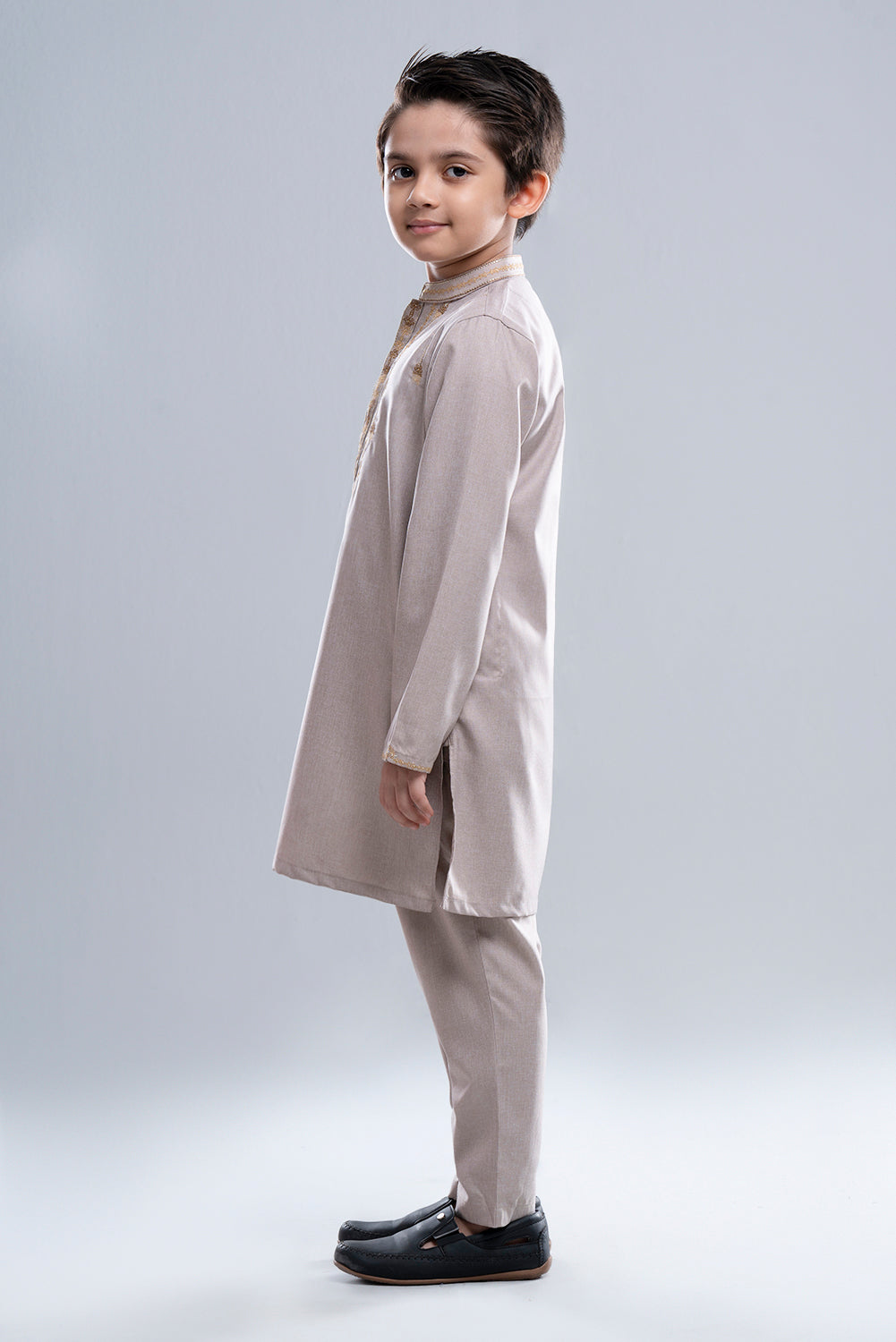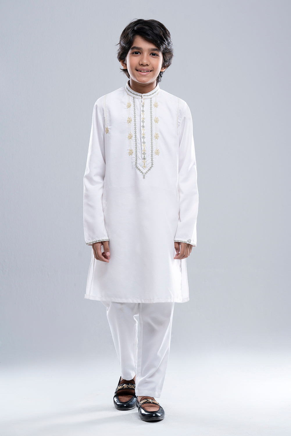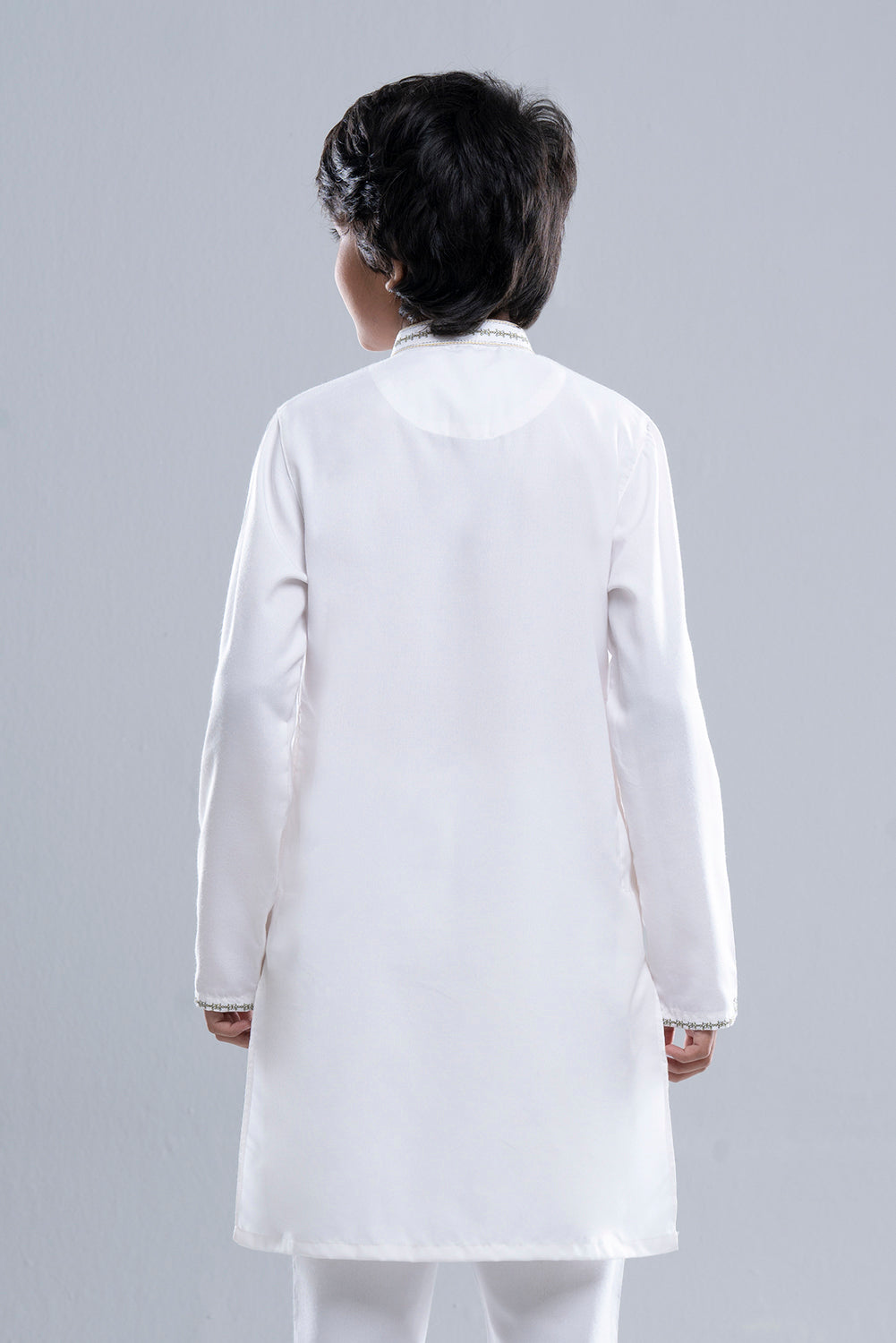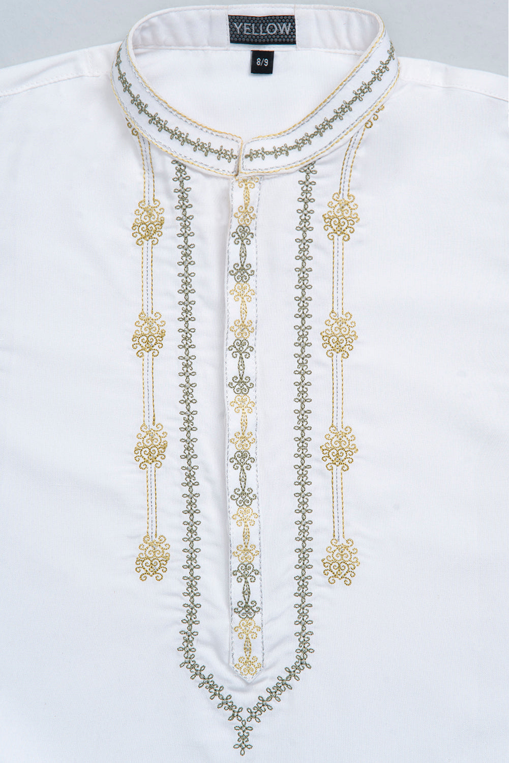 • Embroidery on collar, hidden placket, neck and sleeve opening