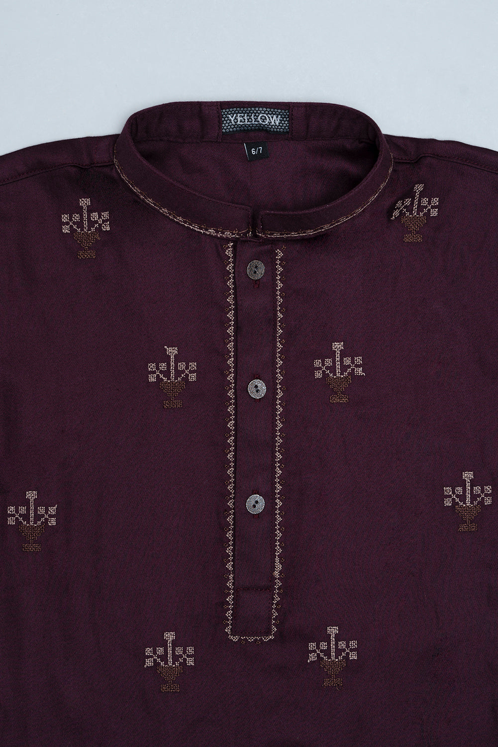 • Embroidery on collar, neck sleeve opening, and all over the body.