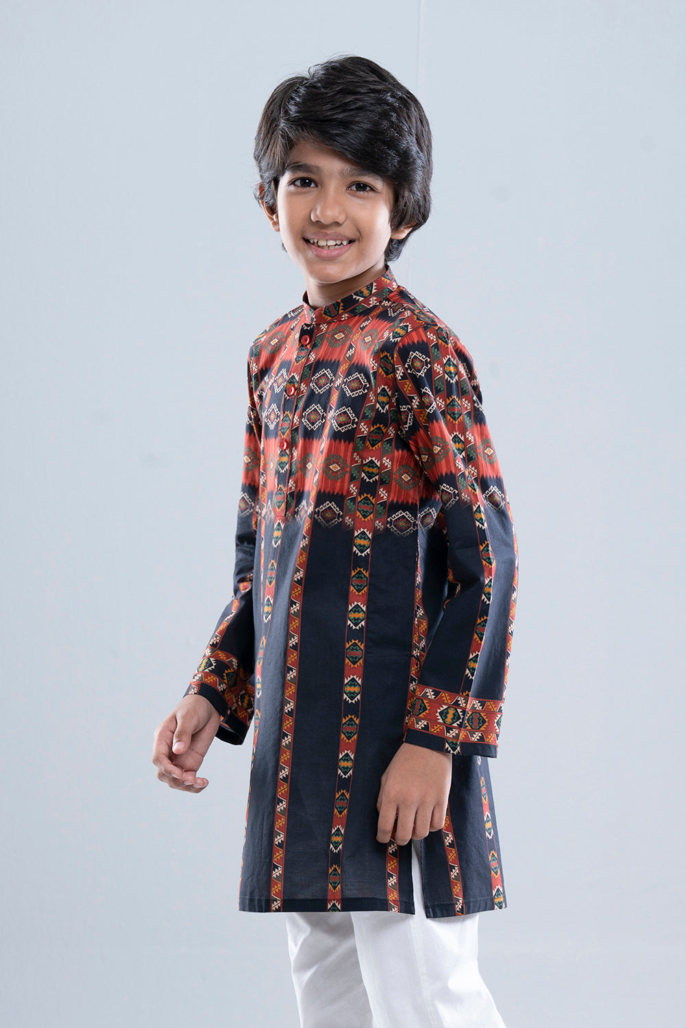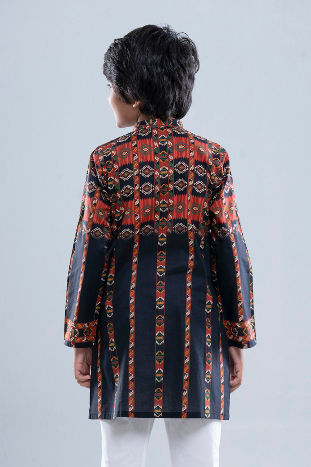 • Contrast printed fabric on inner collar band, inner placket and back moon.
