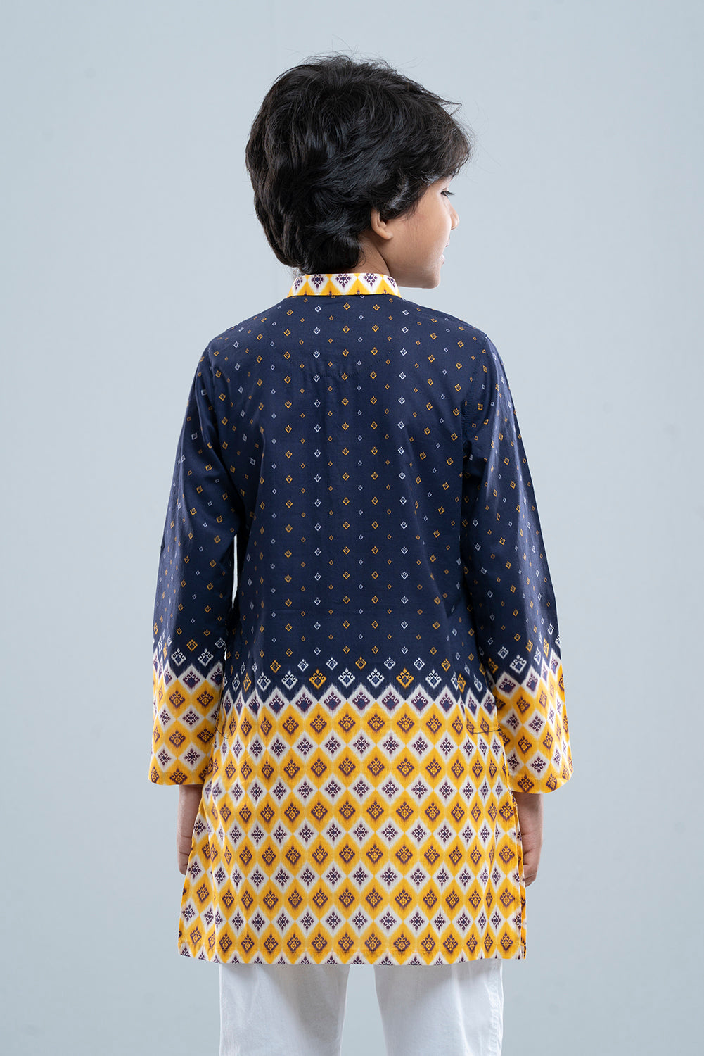 • 100% cotton Digital placement printed panjabi with contrast collar band