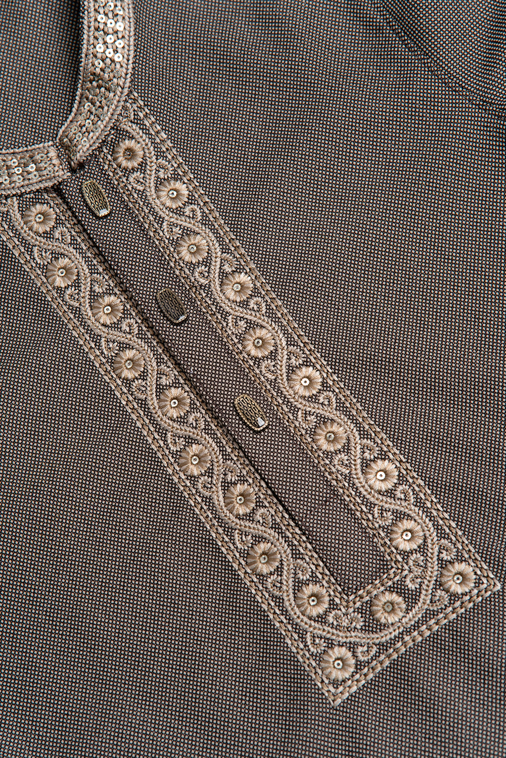 Premium dobby fabric Boy's with sequin embroidery on collar and neck.