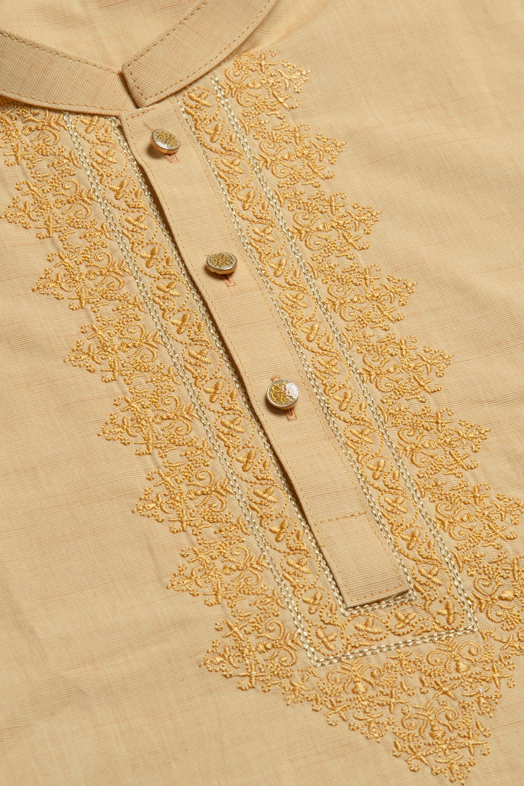100% cotton yarn dyed fabric Boy's Panjabi with embroidery on neck.