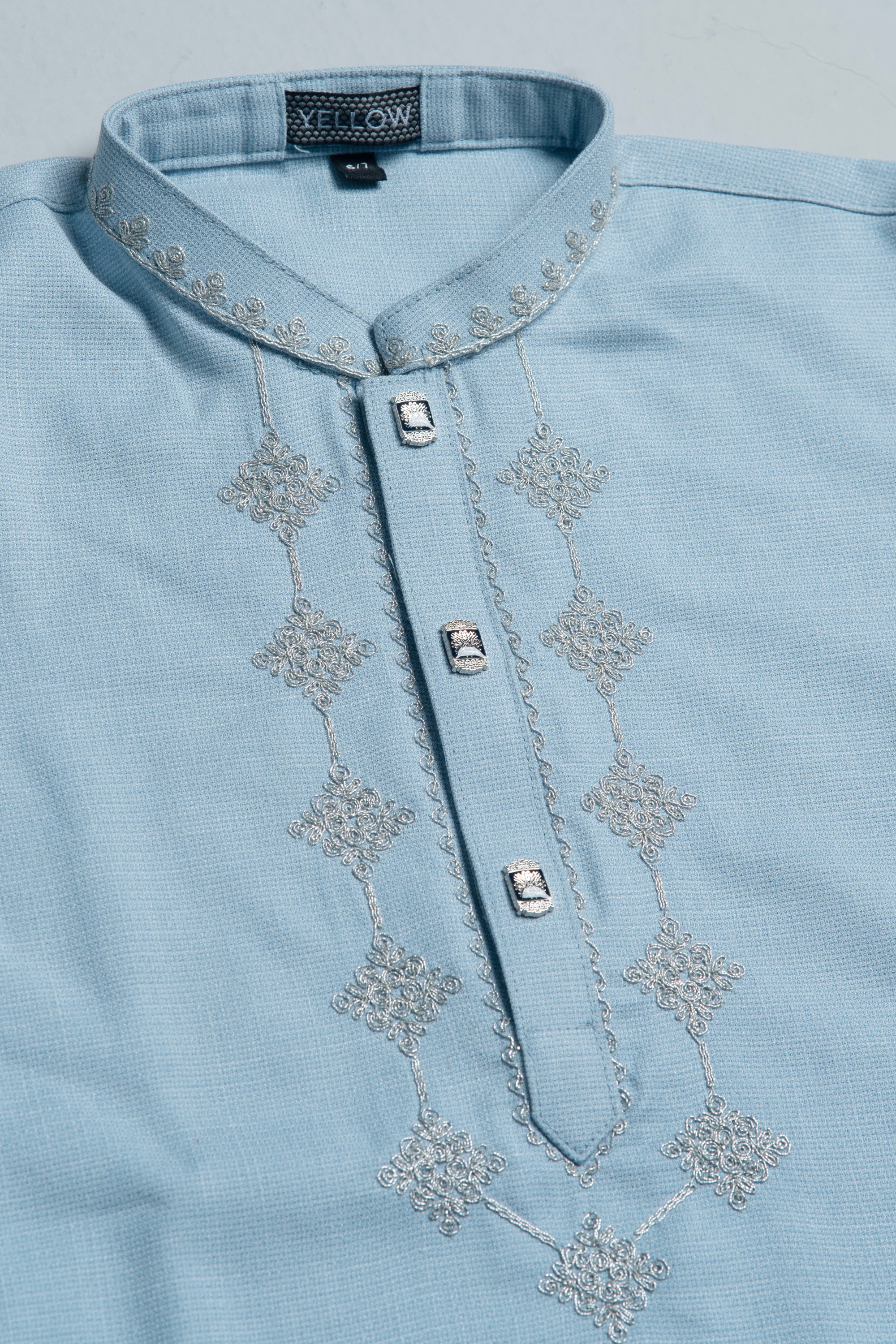 TR fabric boy's panjabi with cord embroidery on collar and neck.