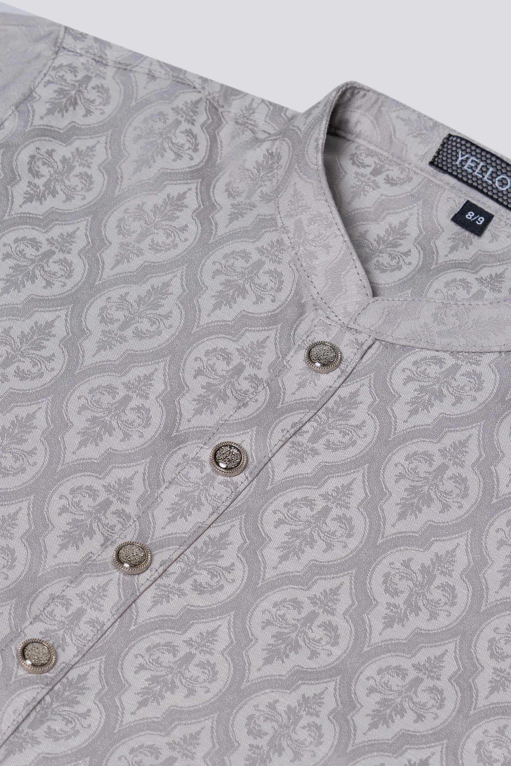 A regular fit boy's Panjabi crafted from 100% cotton jacquard breathable fabric, featuring elegant snap buttons, offers a stylish yet comfortable semi-formal look. Perfect for effortless elegance and all-day ease.