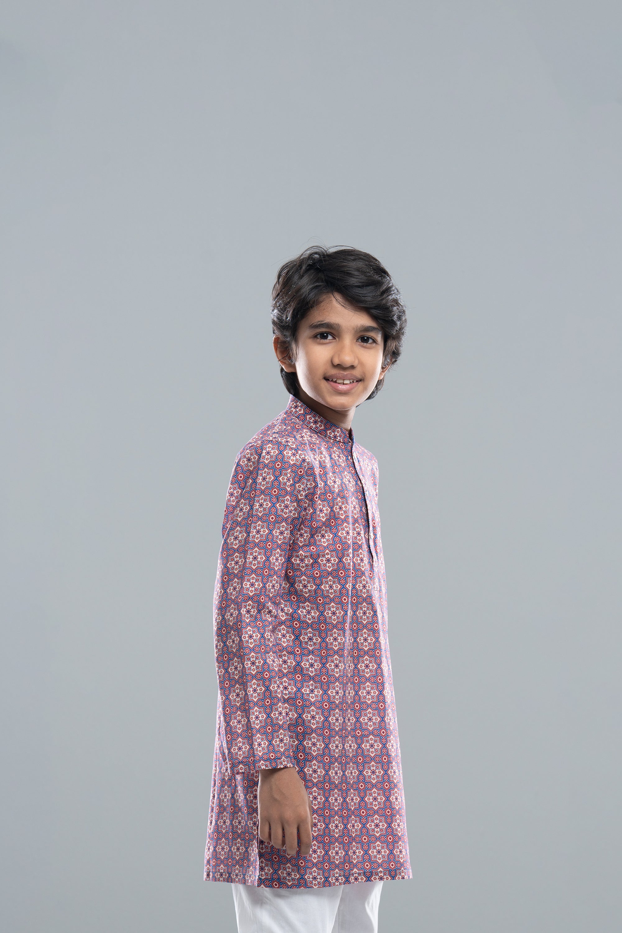 100% cotton digital printed boy's panjabi with contrast on inner collar inner placket and back moon.