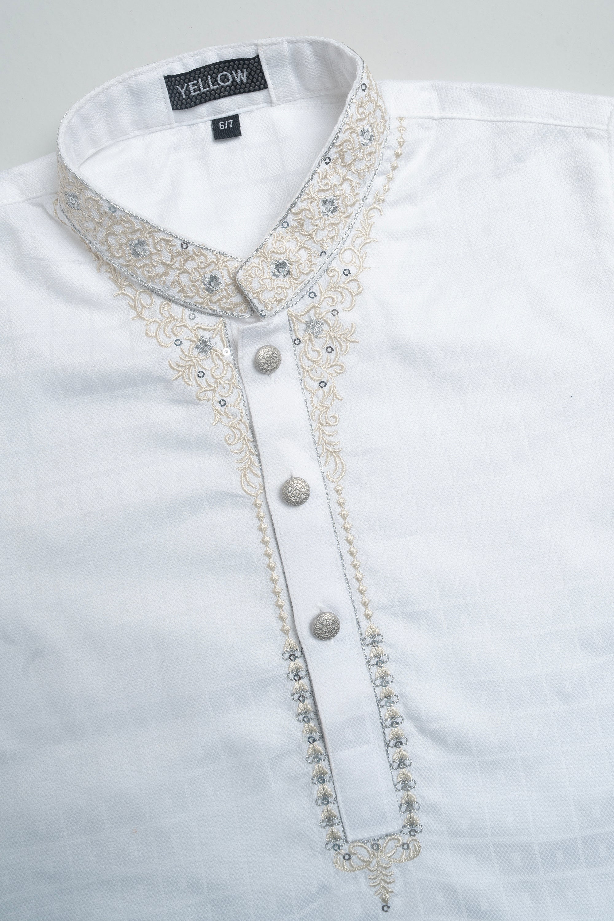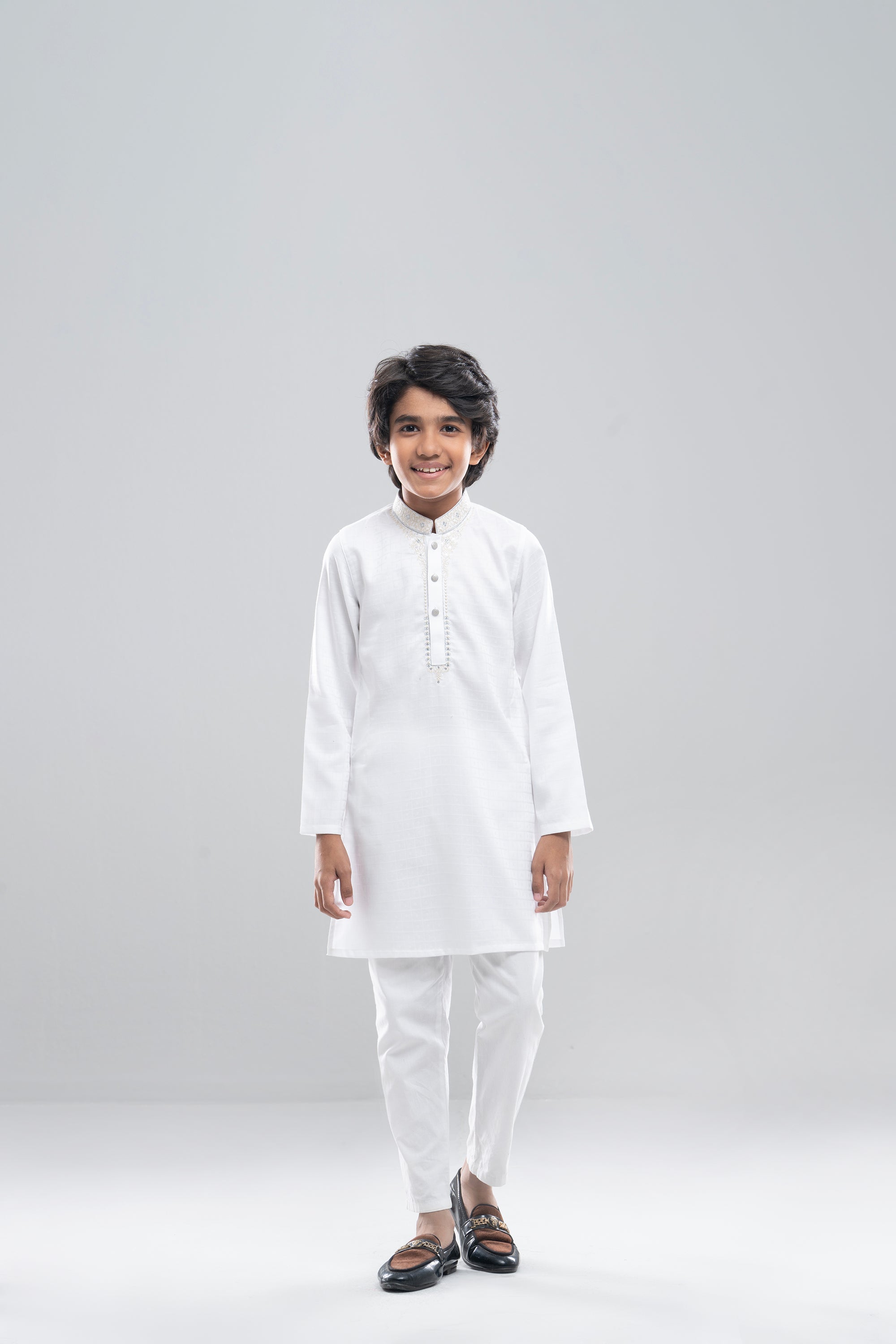 Cotton jacquard Boy's basic panjabi with embroidery.
