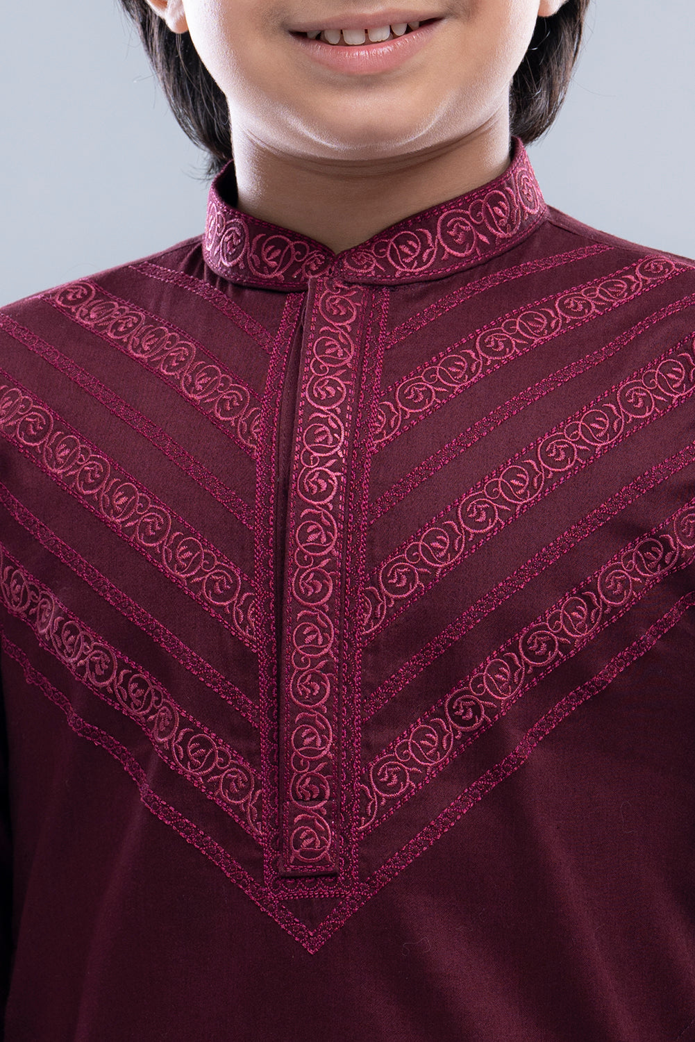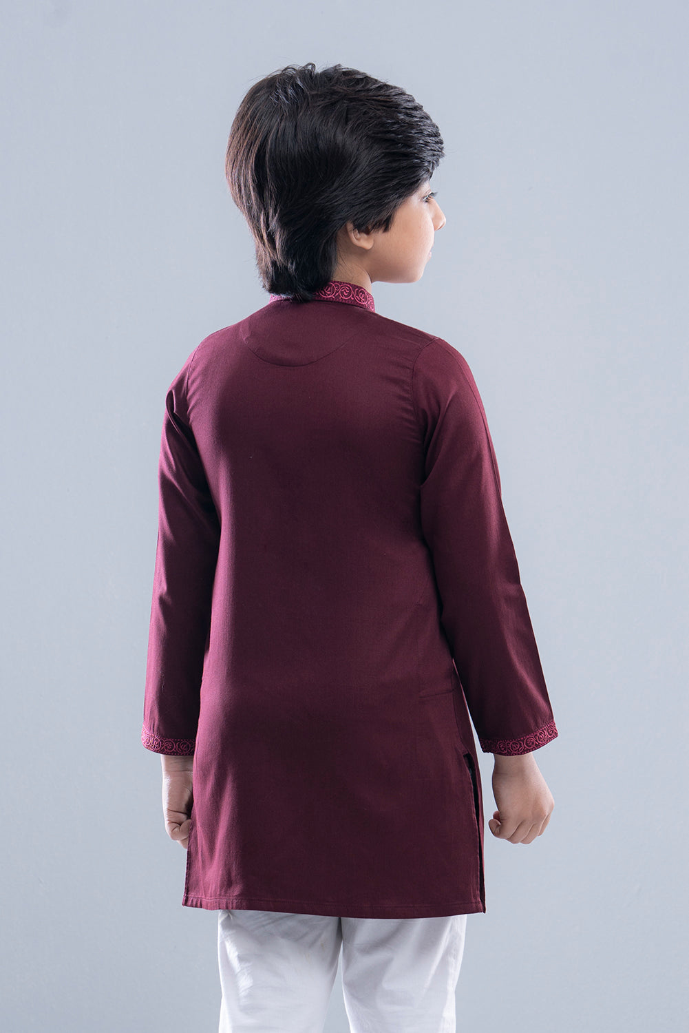 • Embroidery on collar, hidden placket ,front part ,neck and sleeve opening
