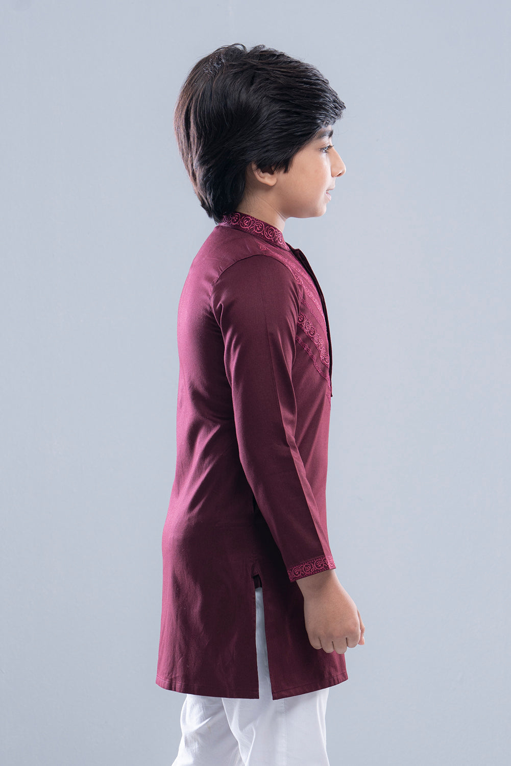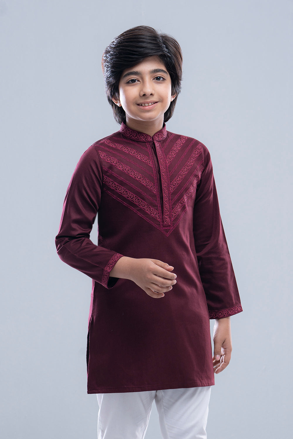 • Embroidery on collar, hidden placket ,front part ,neck and sleeve opening