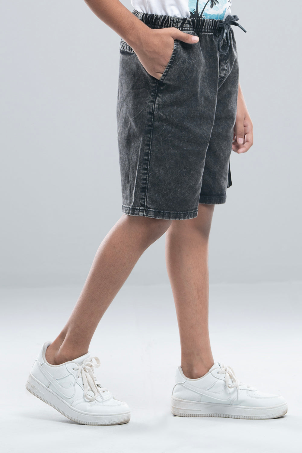 • Knee-length shorts in soft, washed cotton denim with a worn look.