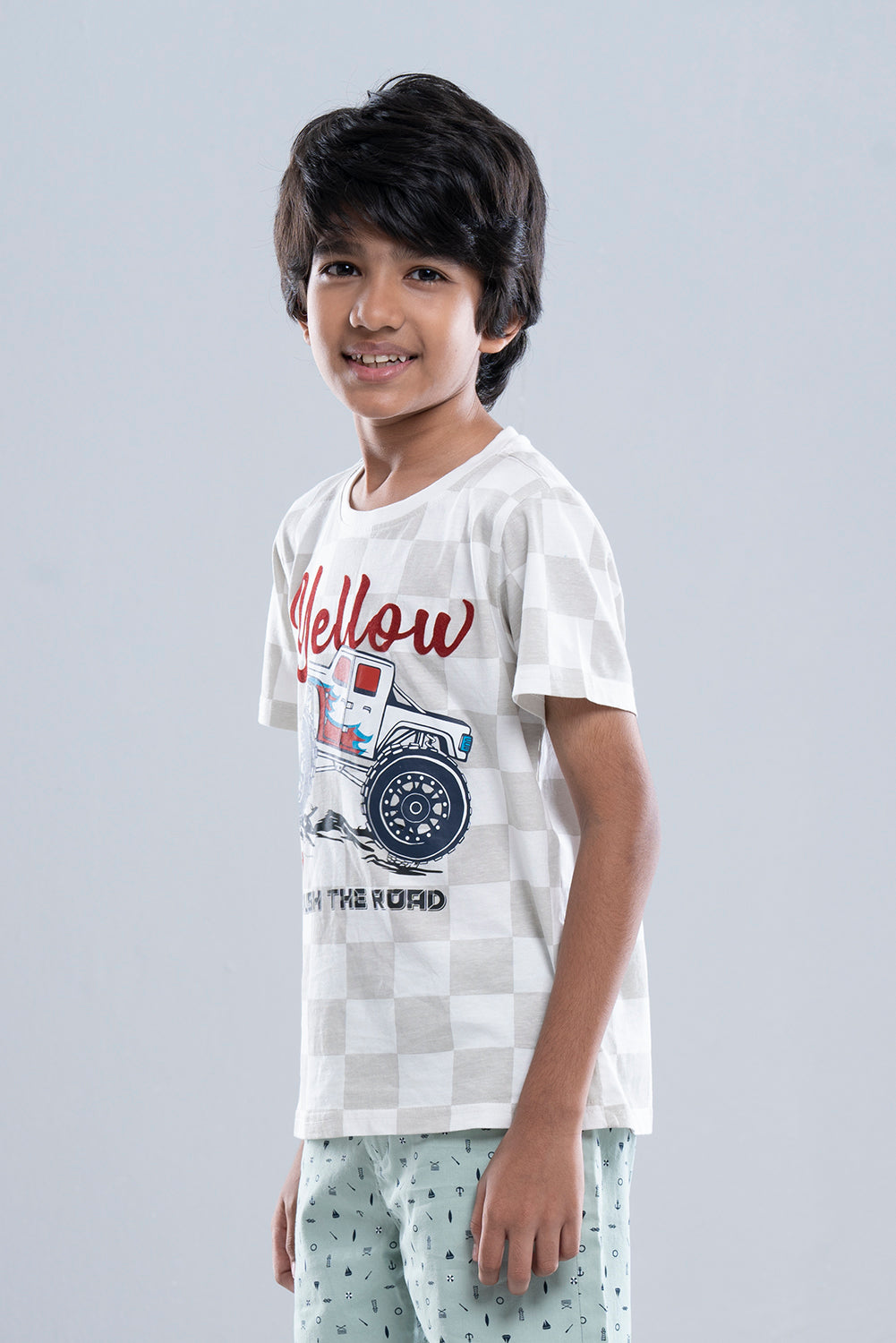 • Short-sleeve tee with all-over check print and bold truck graphic at front – soft, breathable, and full of playful energy for everyday wear.