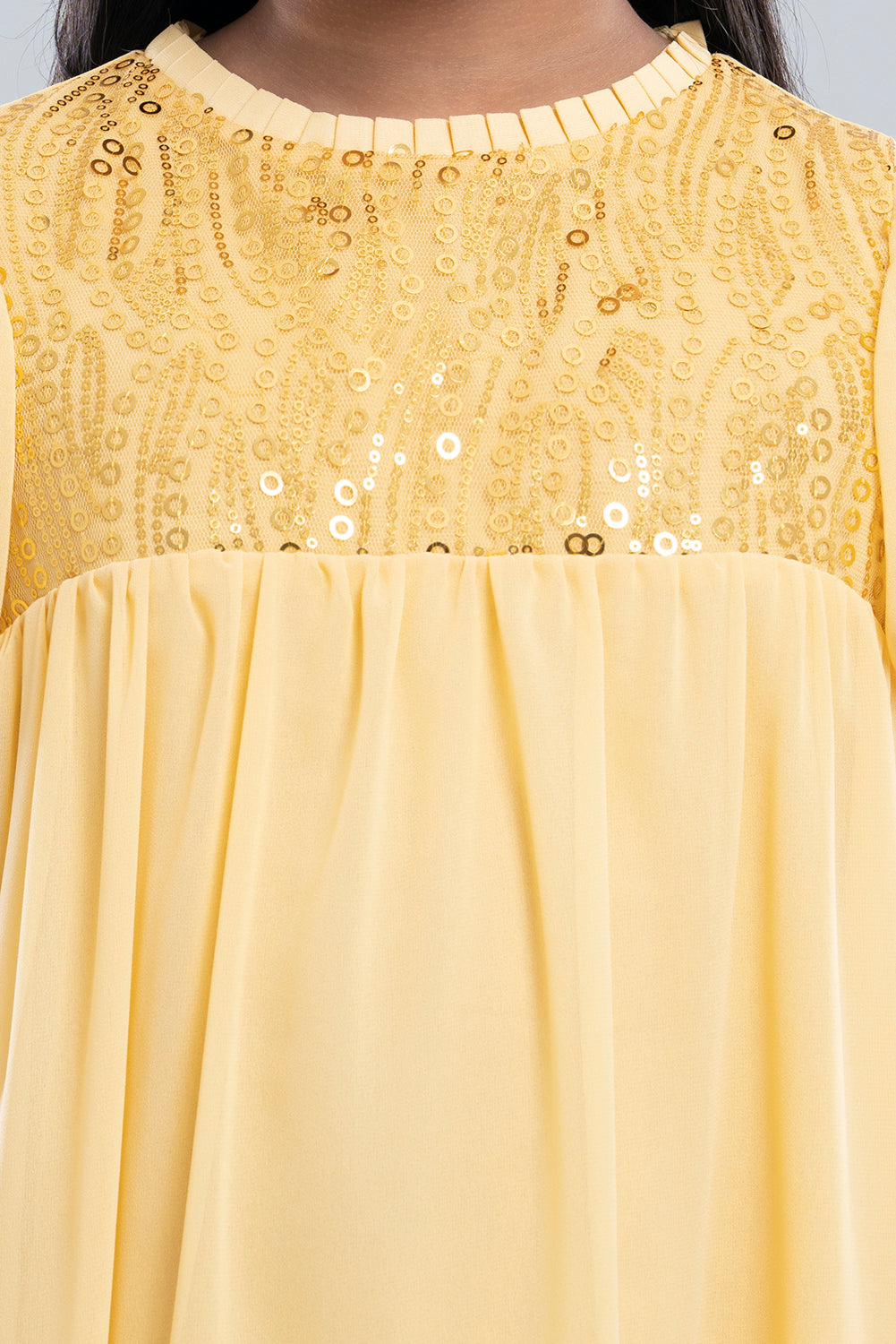 • REGULAR GIRLS DRESS YOKE WITH SHINY SEQUIN FABRIC.
