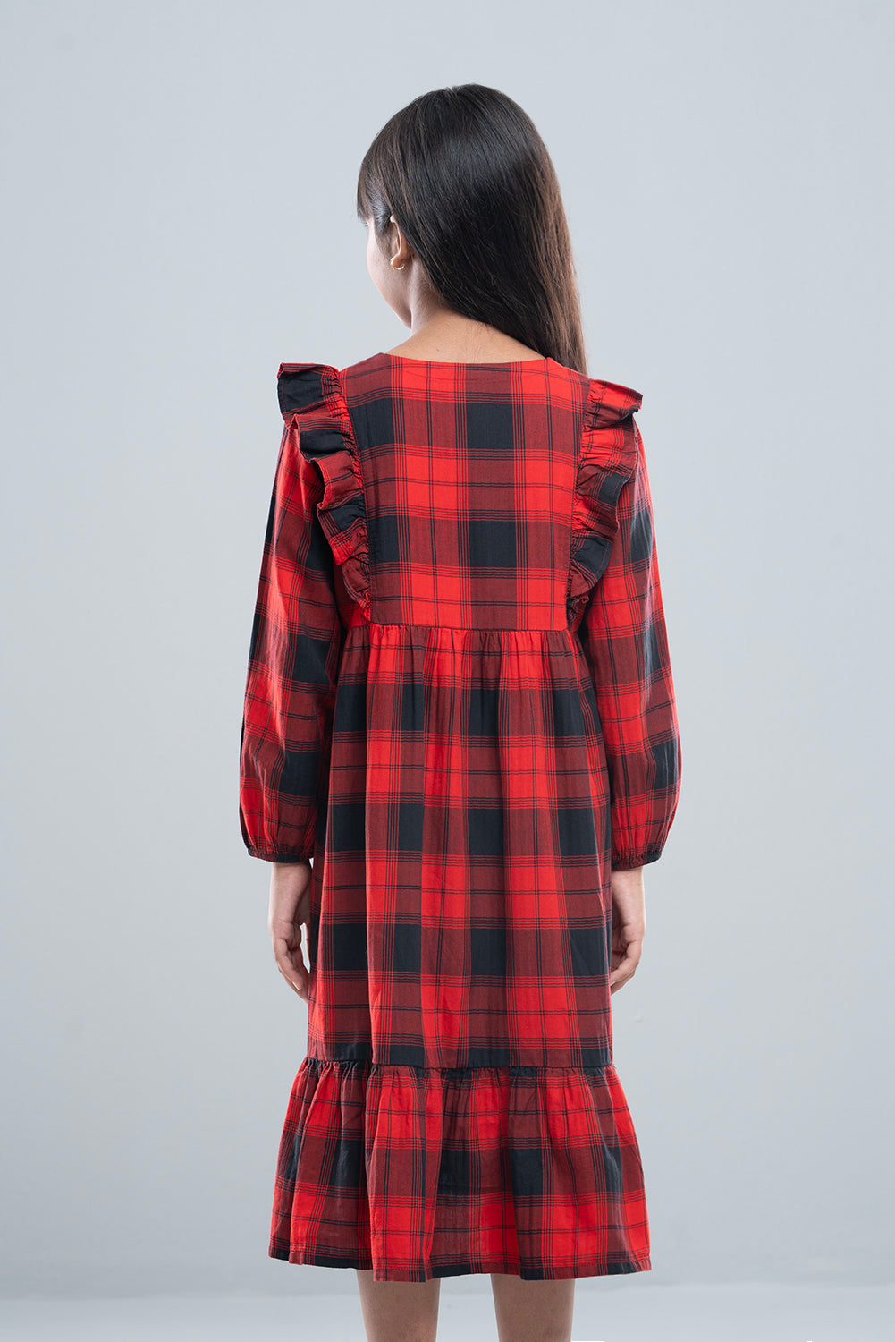 • Regular girls dress with check fabric.