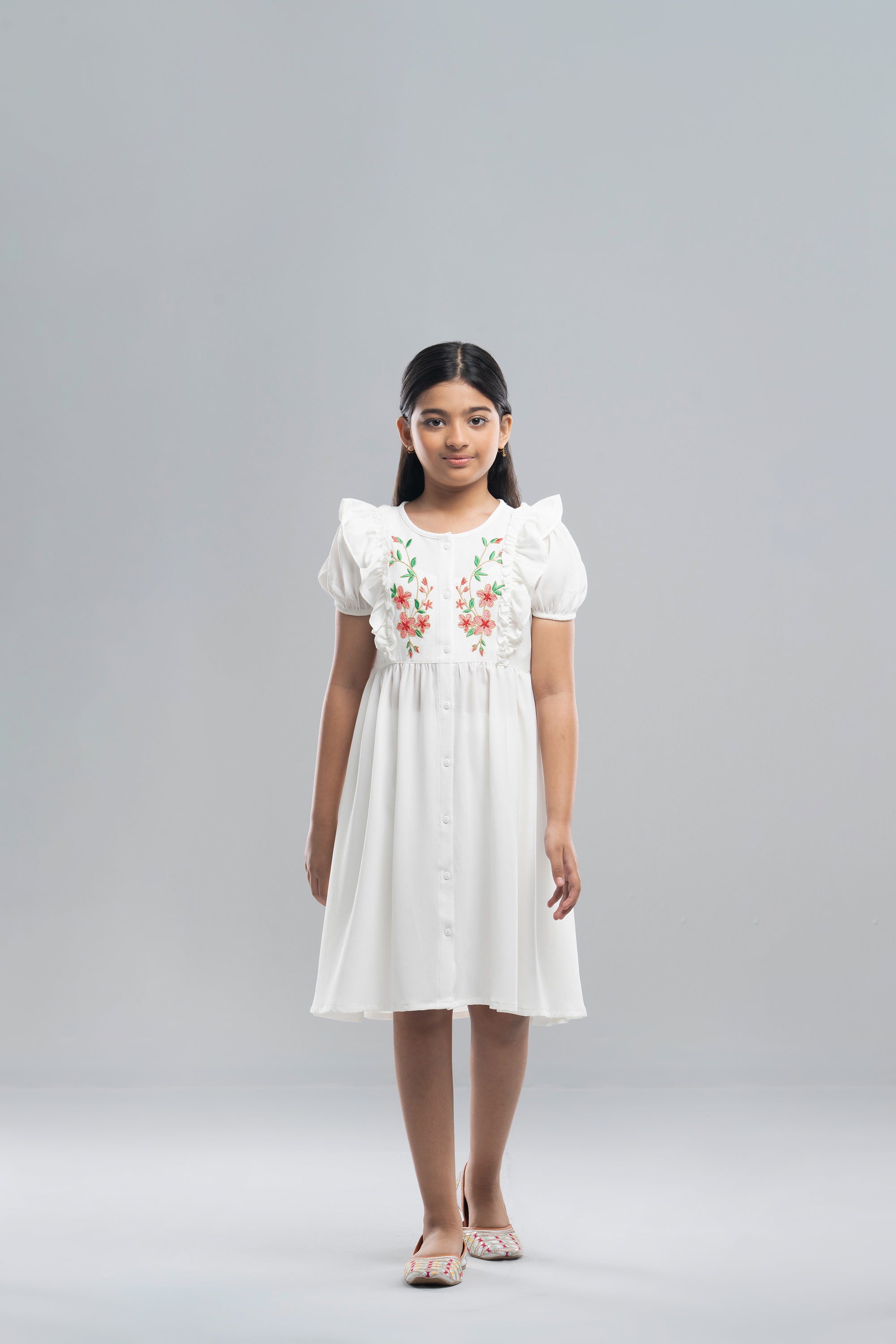 • Sleeve-sleeve less. yoke with floral embroidery.