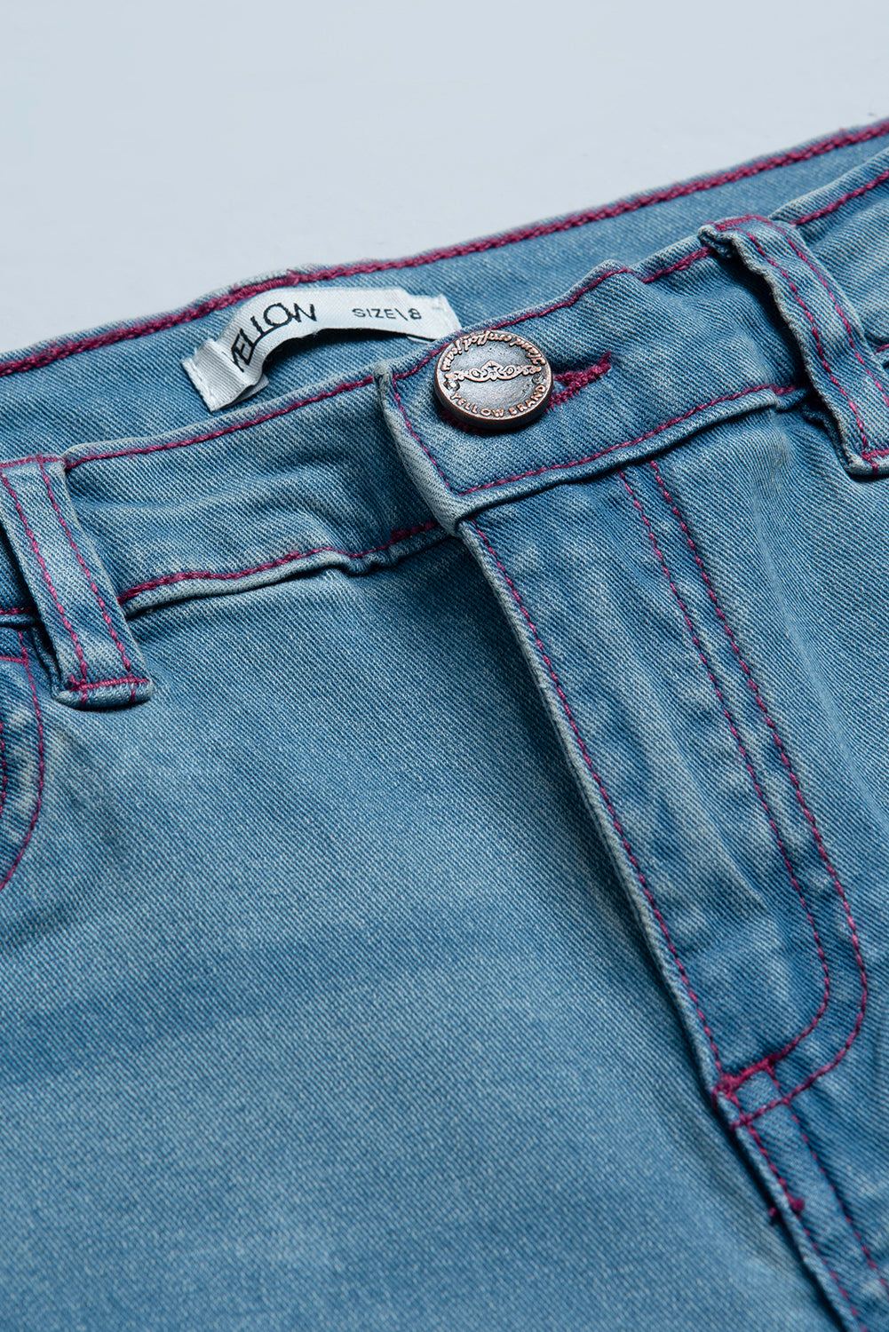• This standout stitching details the pockets, seams, and a horizontal panel across the knees, adding a fun pop of color to the comfortable denim.