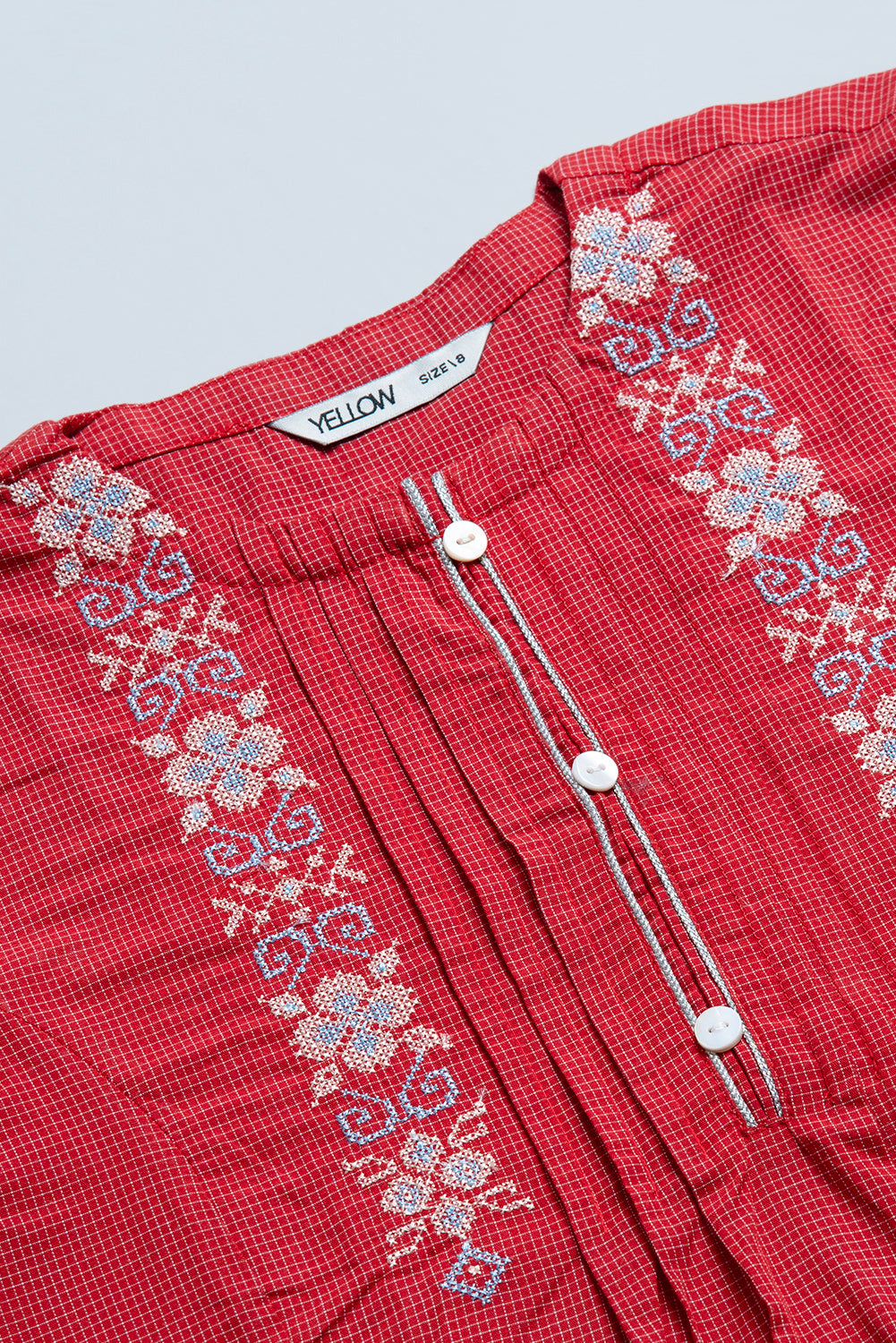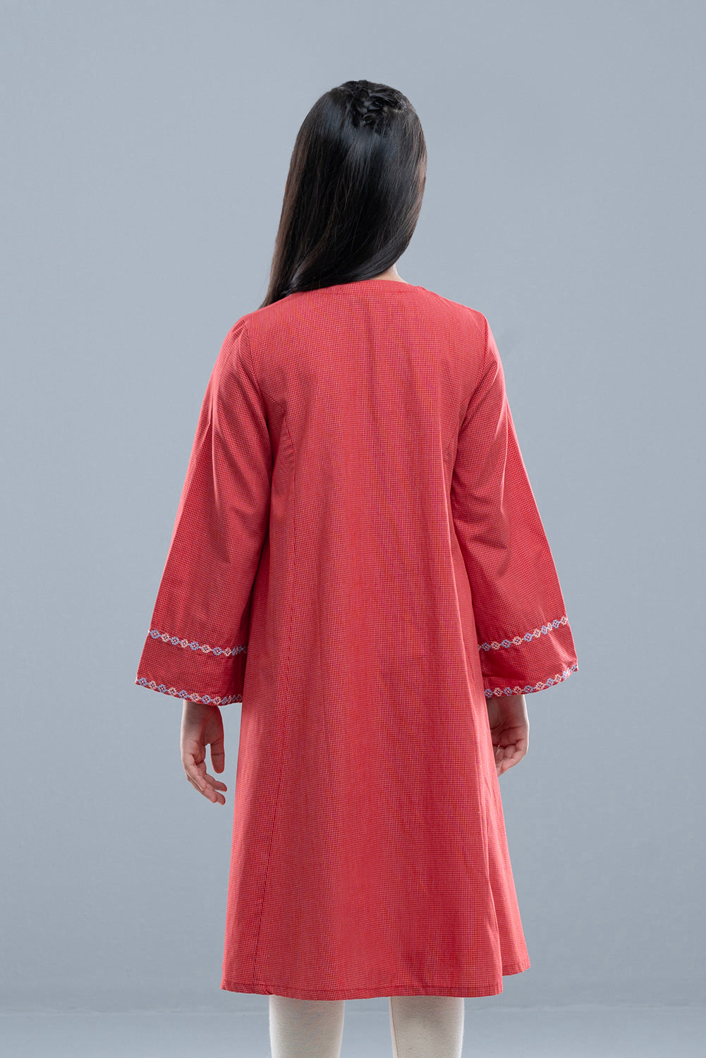 Elegantly crafted in soft micro-check fabric, this winter kurti blends warmth with sophistication. Delicate embroidery and fine pintuck detailing add a refined charm, making it a timeless addition to her seasonal wardrobe.