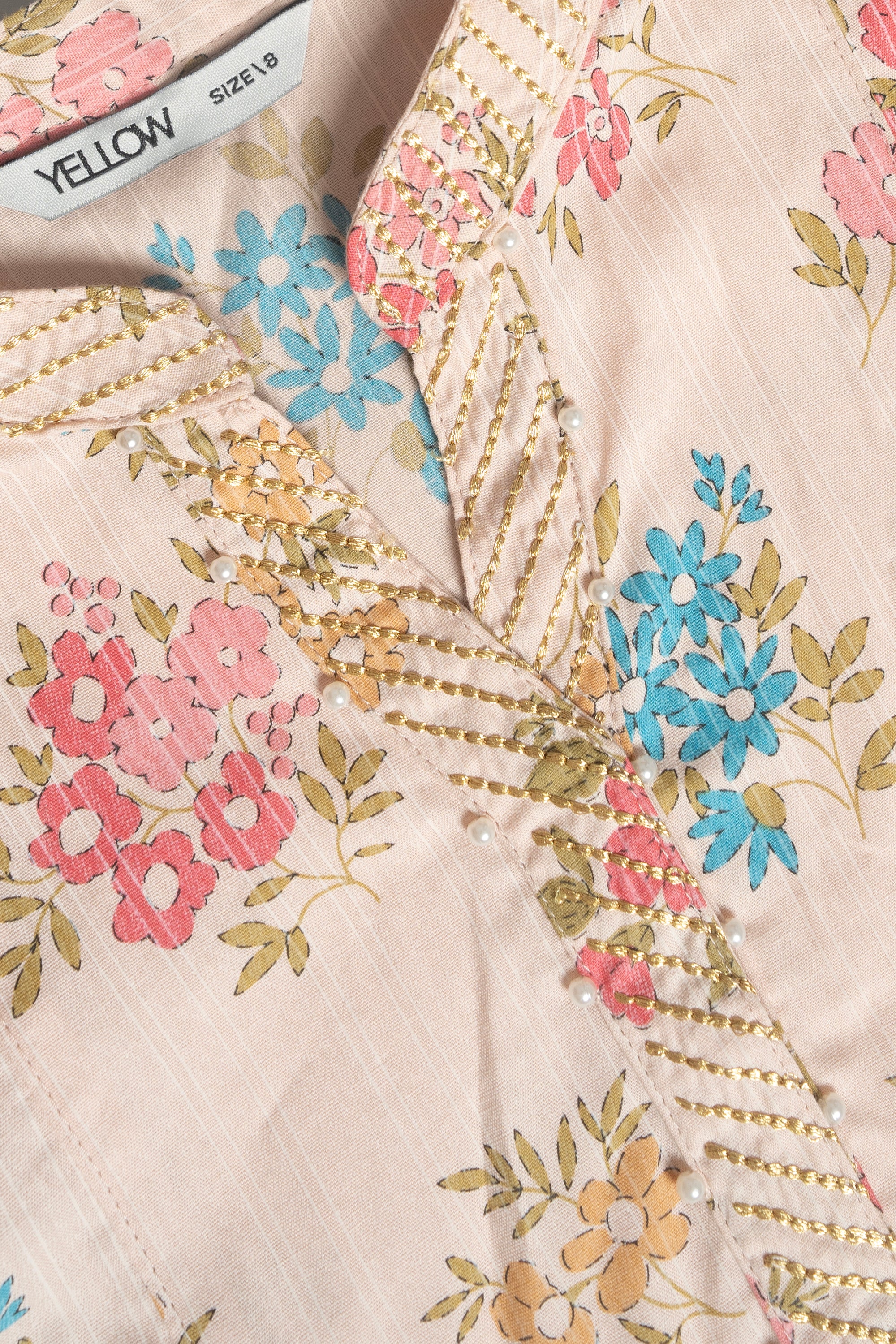 Allover Printed slub cotton Tunic with embroidery plaket and cuff.