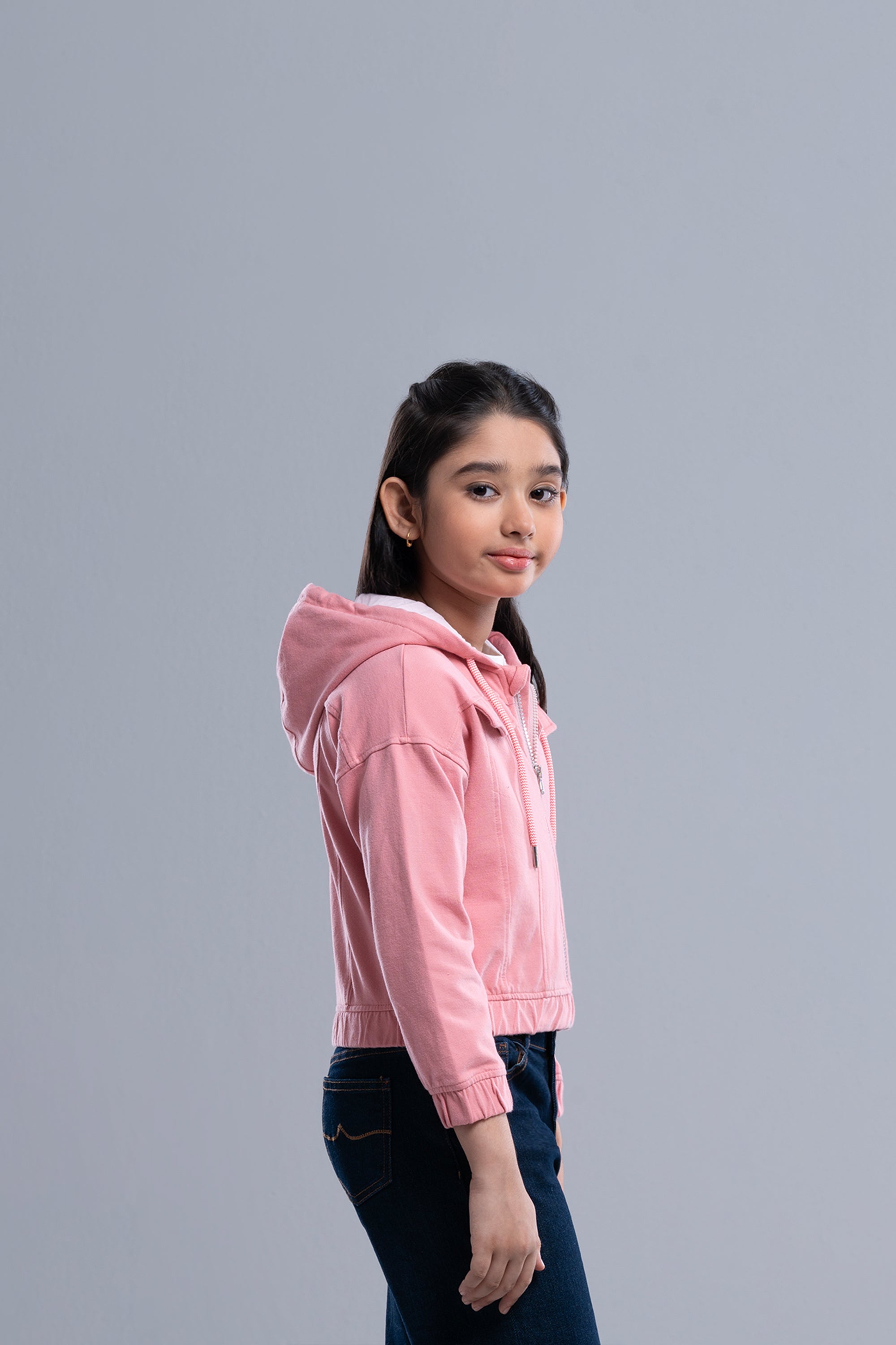 • Regular girls hoodie with terry fleece fabric.