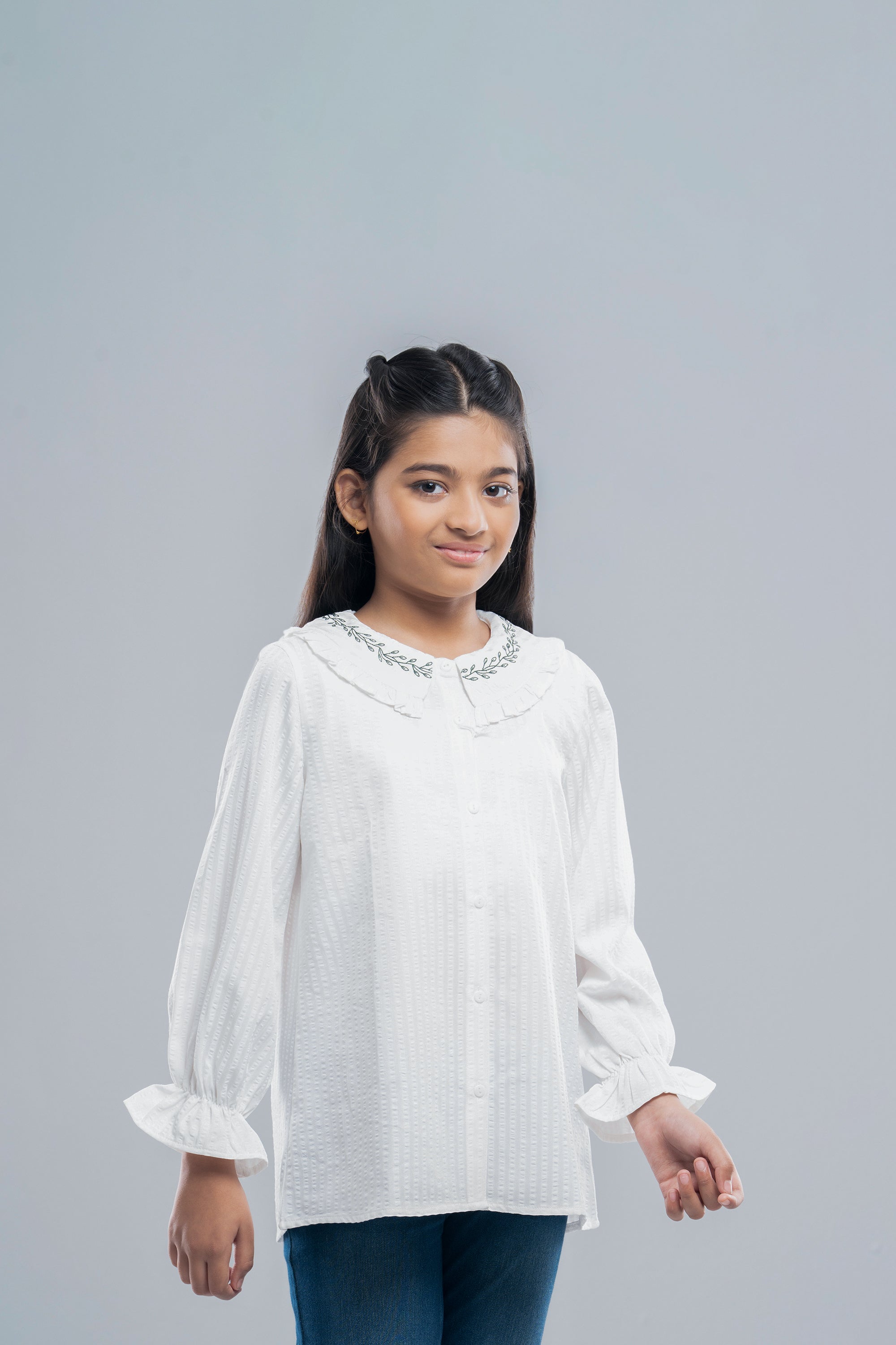 • Embroidery: Detailed embroidery on collar.