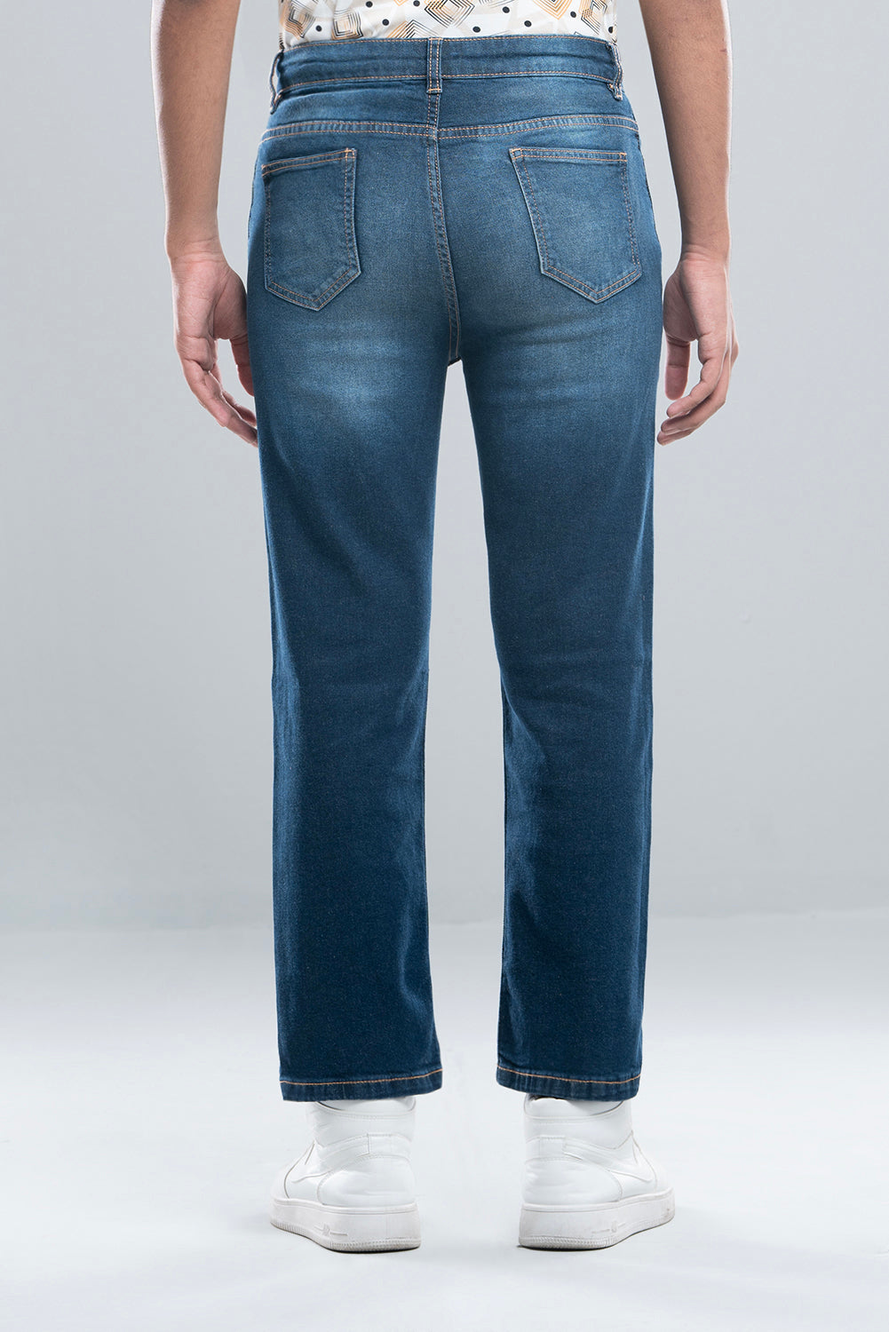 • Slim-fit denim jeans in a classic medium-blue wash.