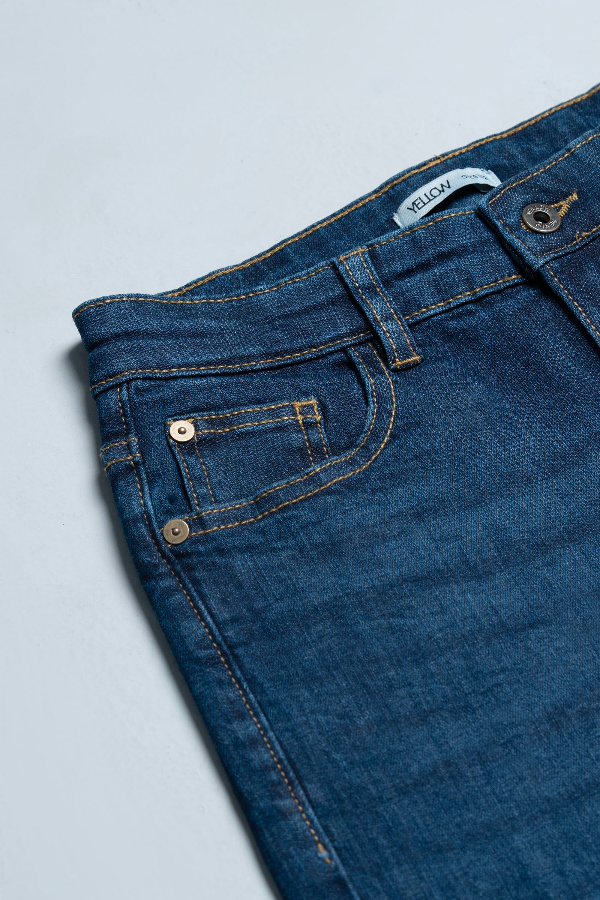 • Zip fly with button, and straight legs.