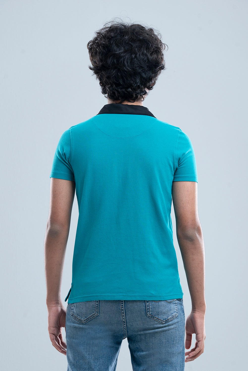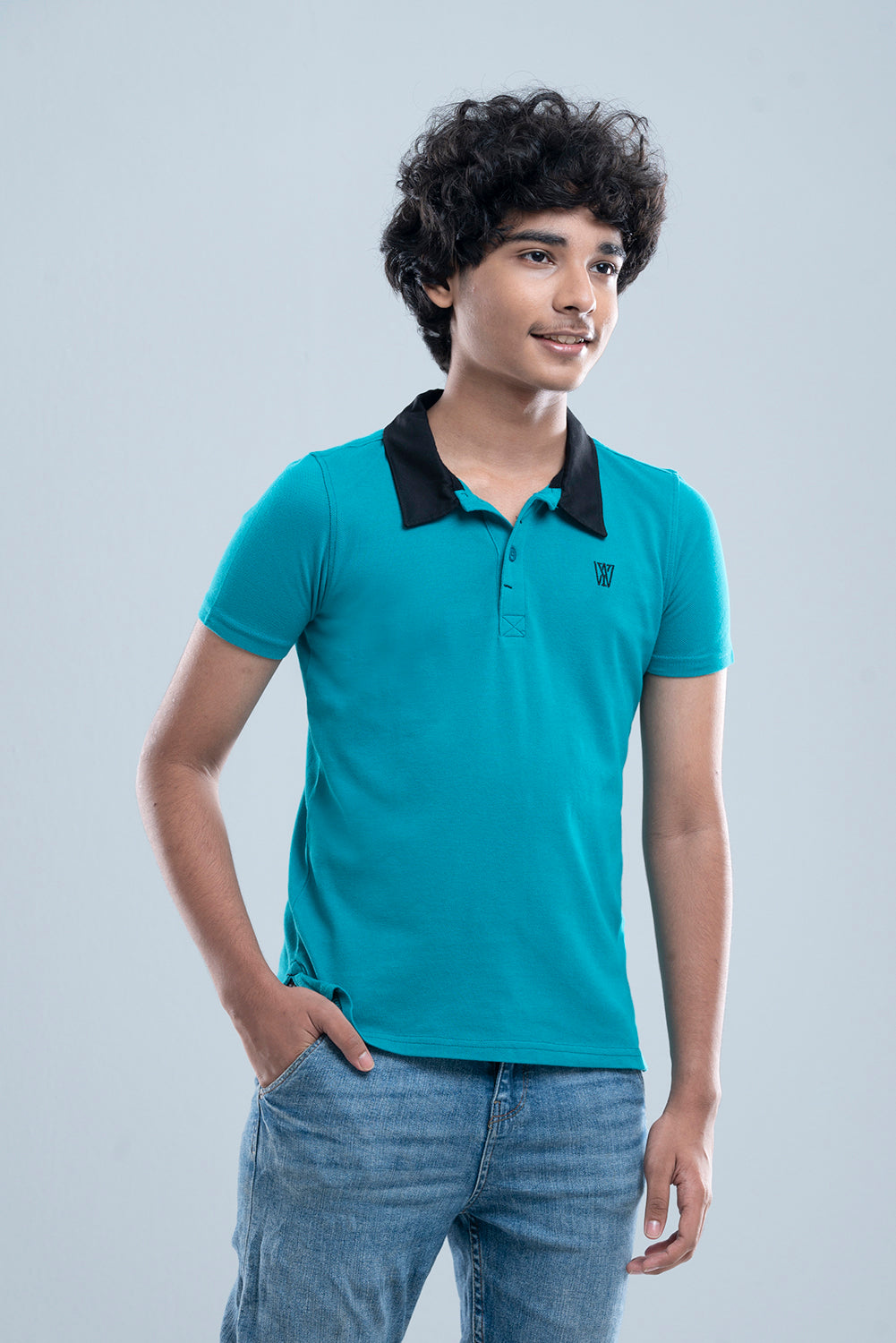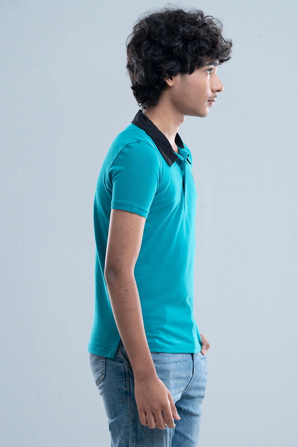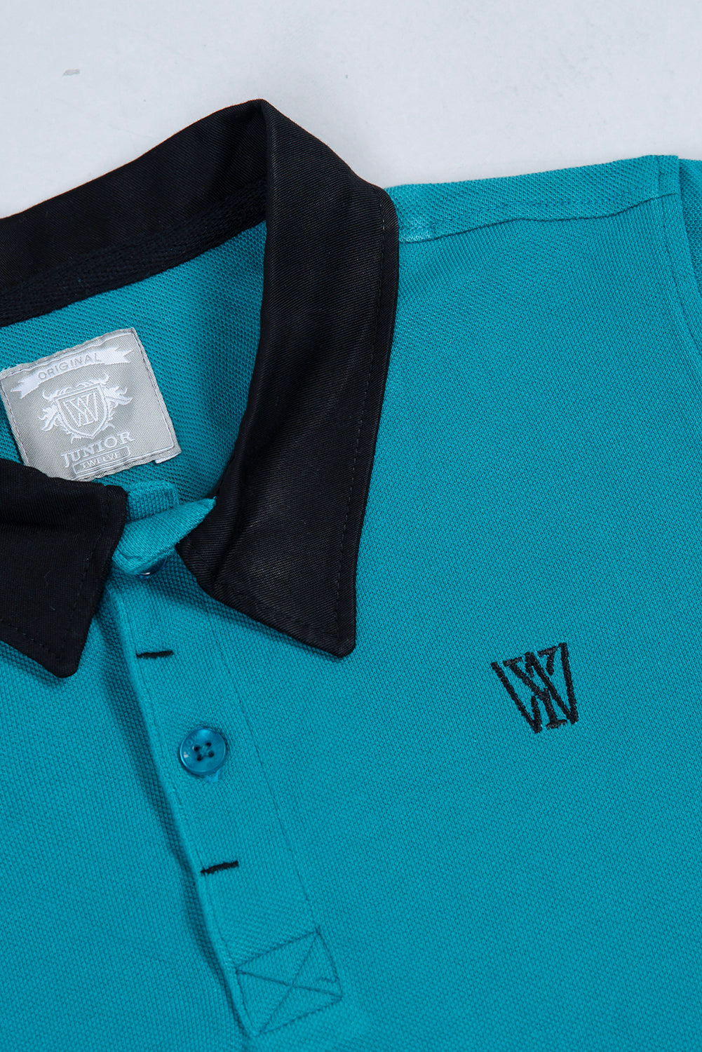 • Boys' polo shirt features a vibrant turquoise body made from breathable cotton fabric