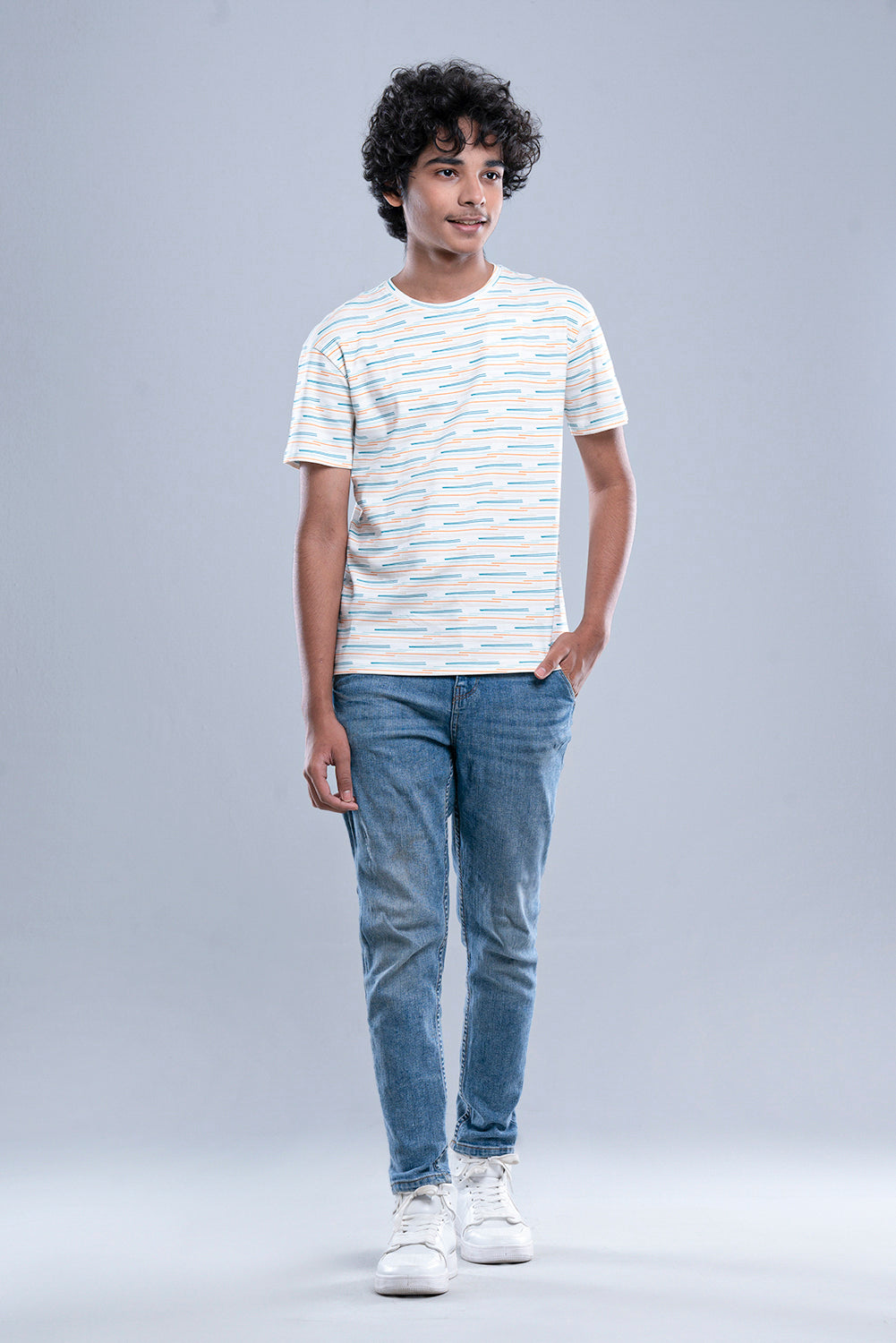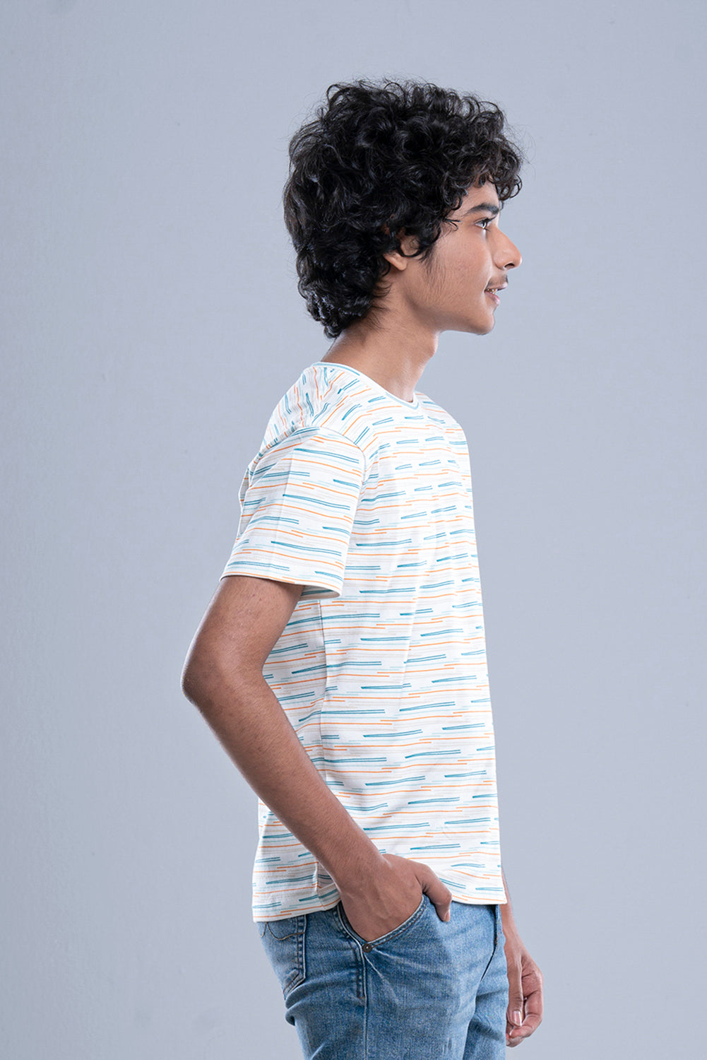 • A digitally printed, drop-shoulder short-sleeve knit T-shirt for junior boys