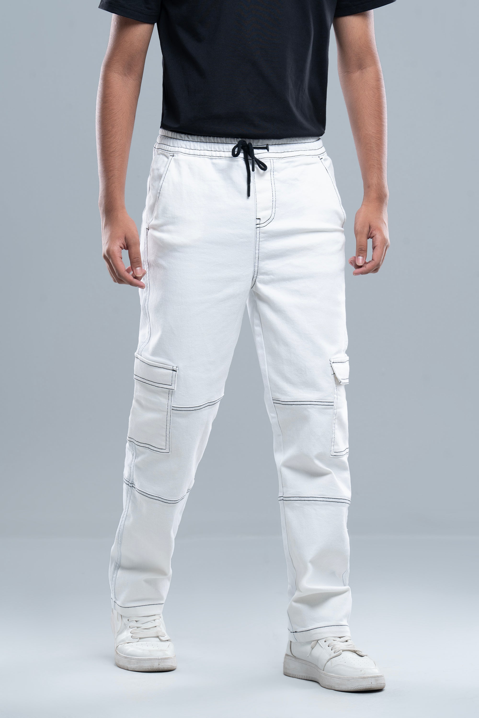 • Relaxed straight-leg fit, an adjustable elastic drawstring waistband