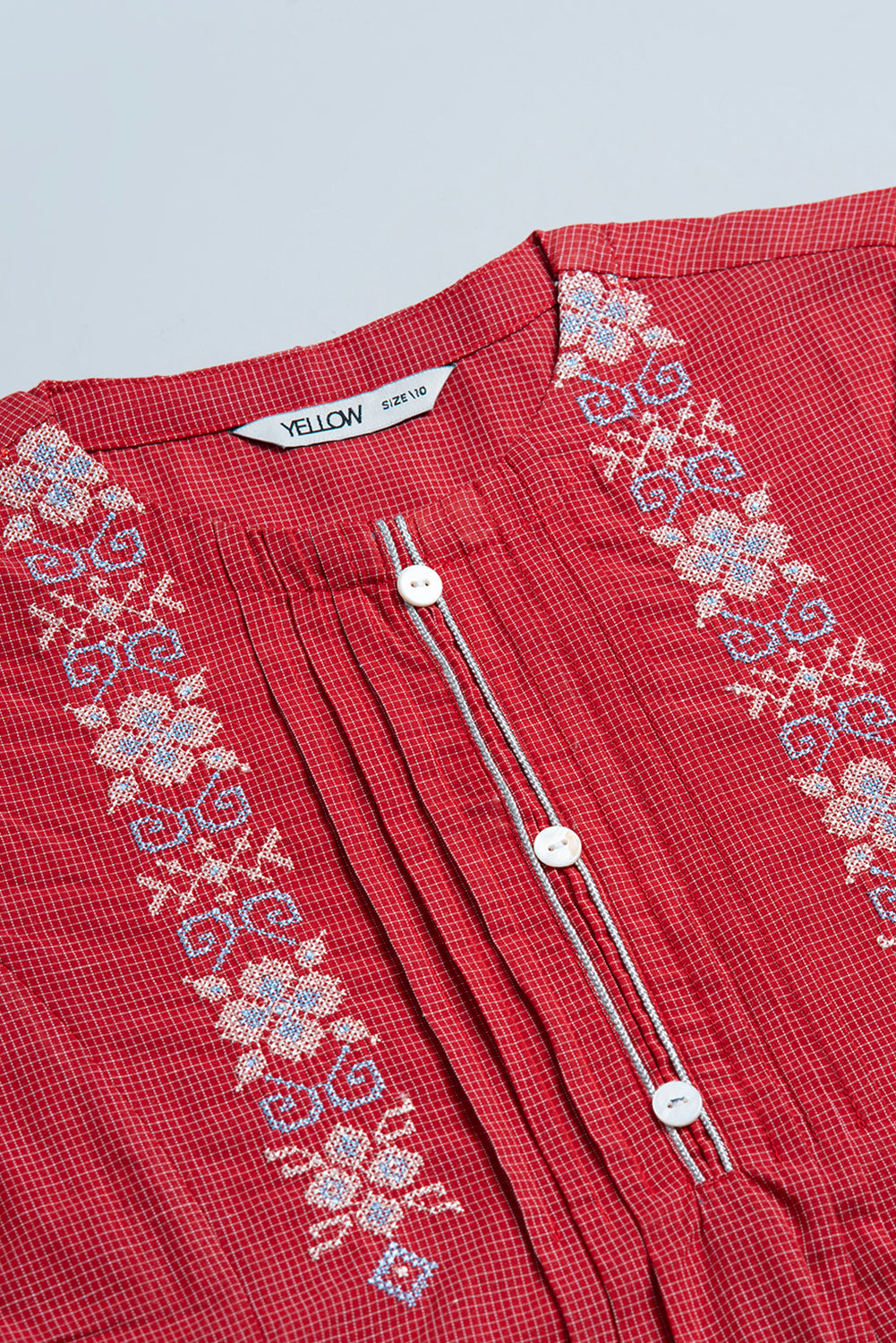 Elegantly crafted in soft micro-check fabric, this winter kurti blends warmth with sophistication. Delicate embroidery and fine pintuck detailing add a refined charm, making it a timeless addition to her seasonal wardrobe.
