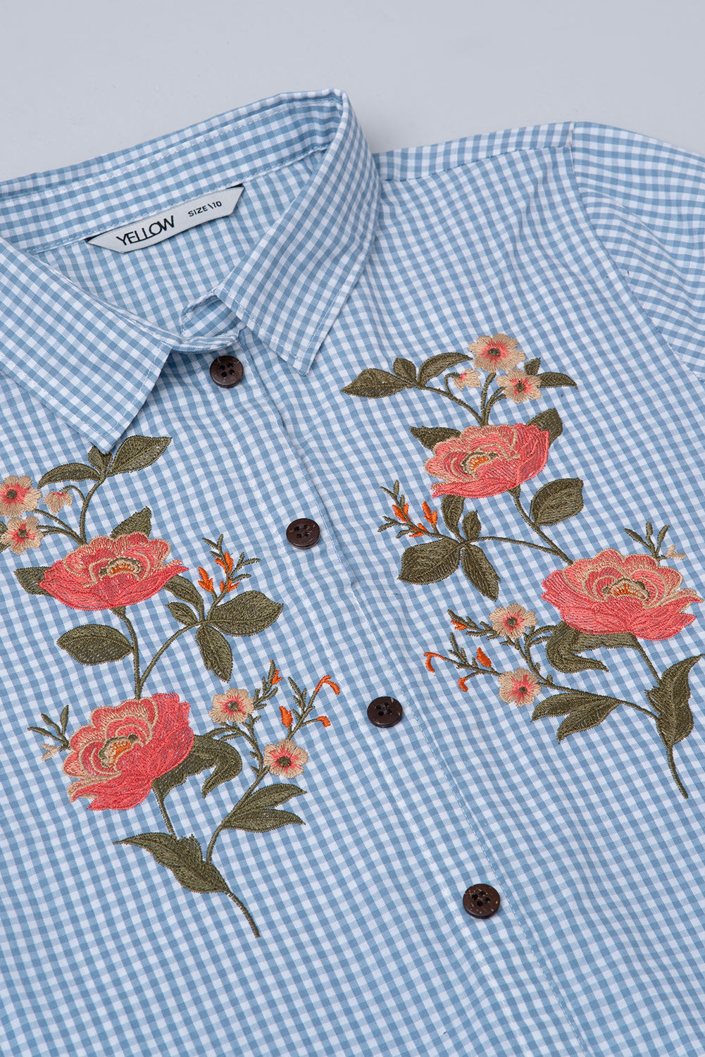 • Delicate floral embroidery at the chest.