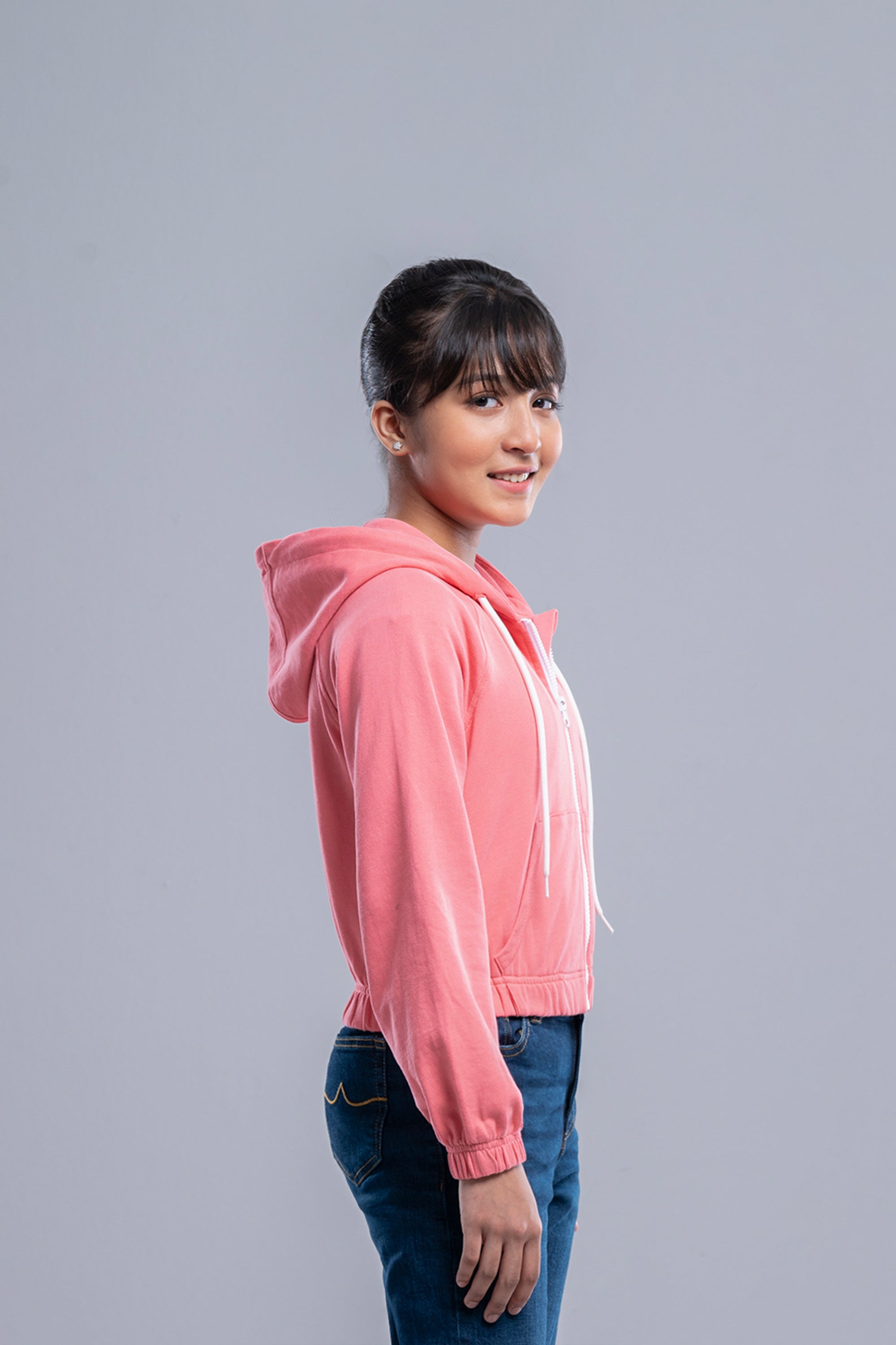 • Junior girs hoodie with terry fleece fabric.