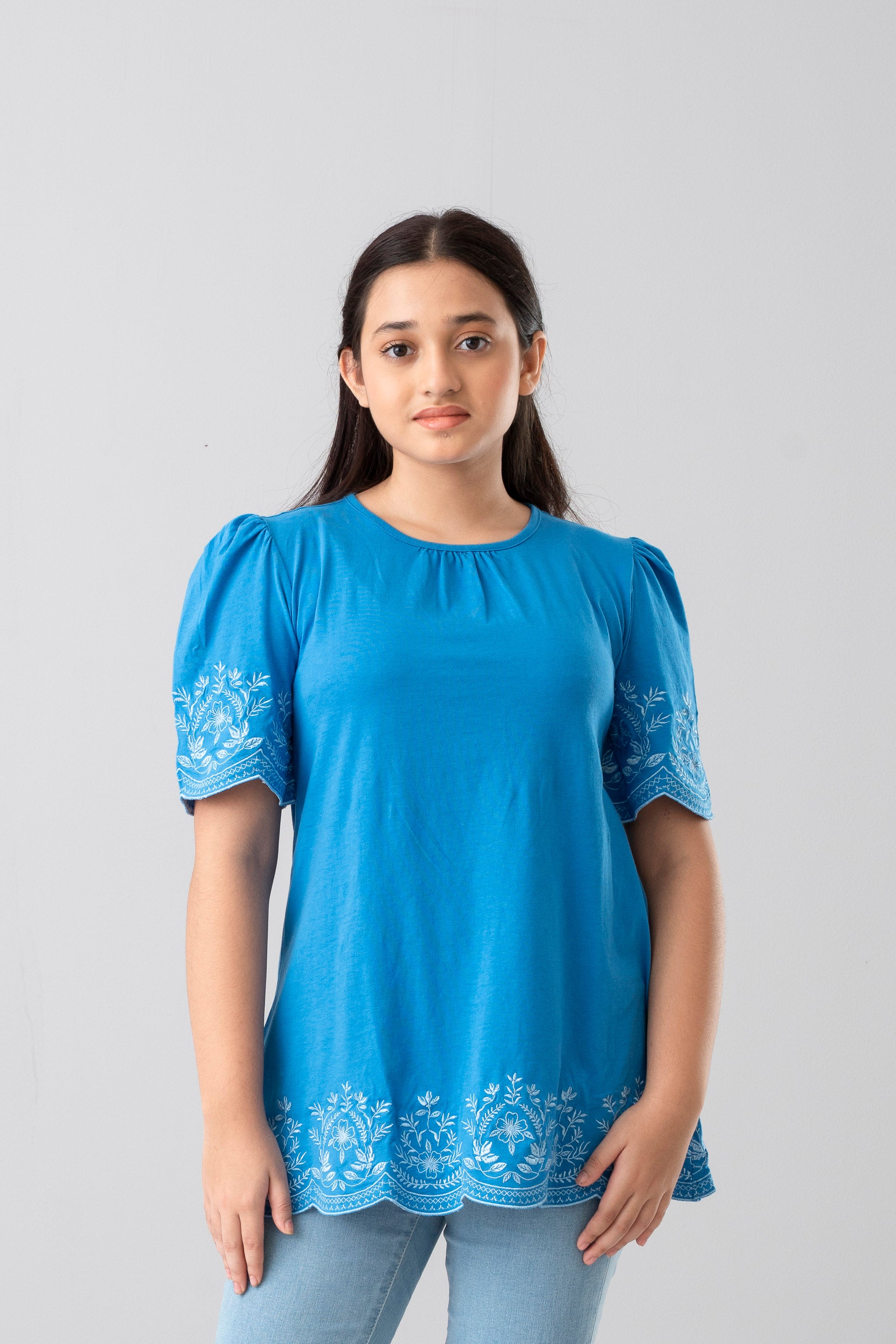 • Full length bell sleeve, round neck ,back opening with button  plaket.