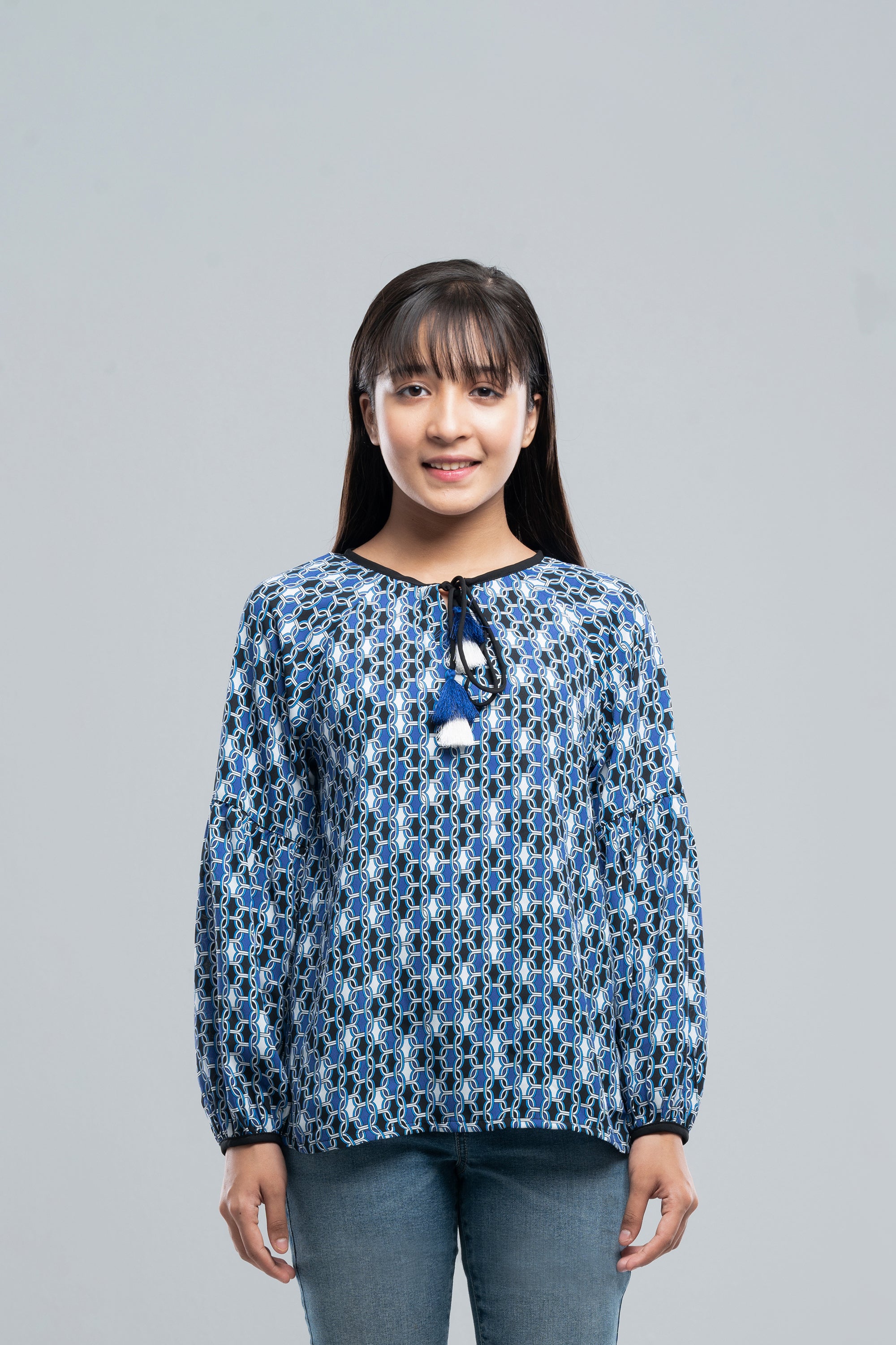 • Using tassel at neckline loop. Trendy and fashionable for teen girls.