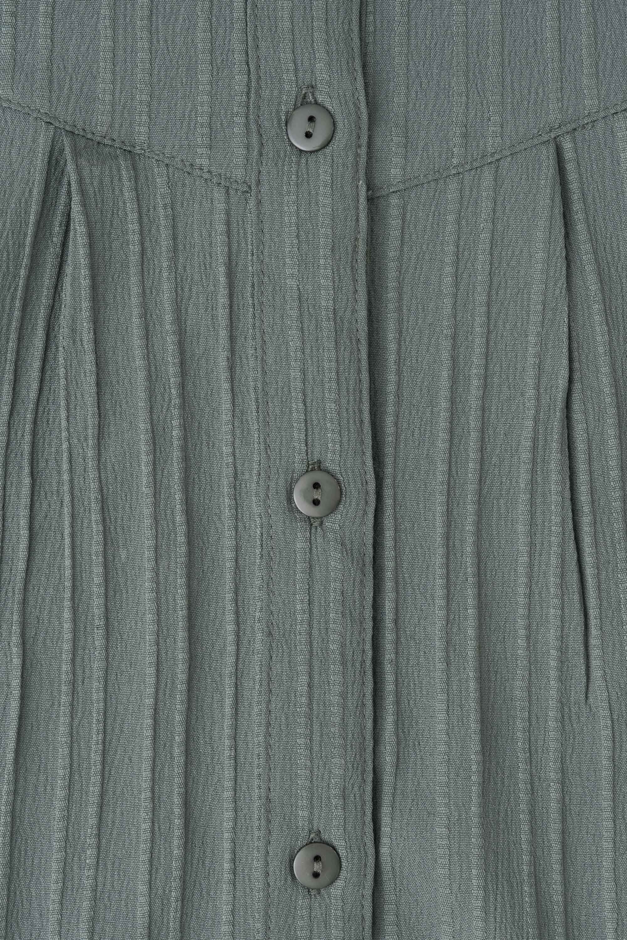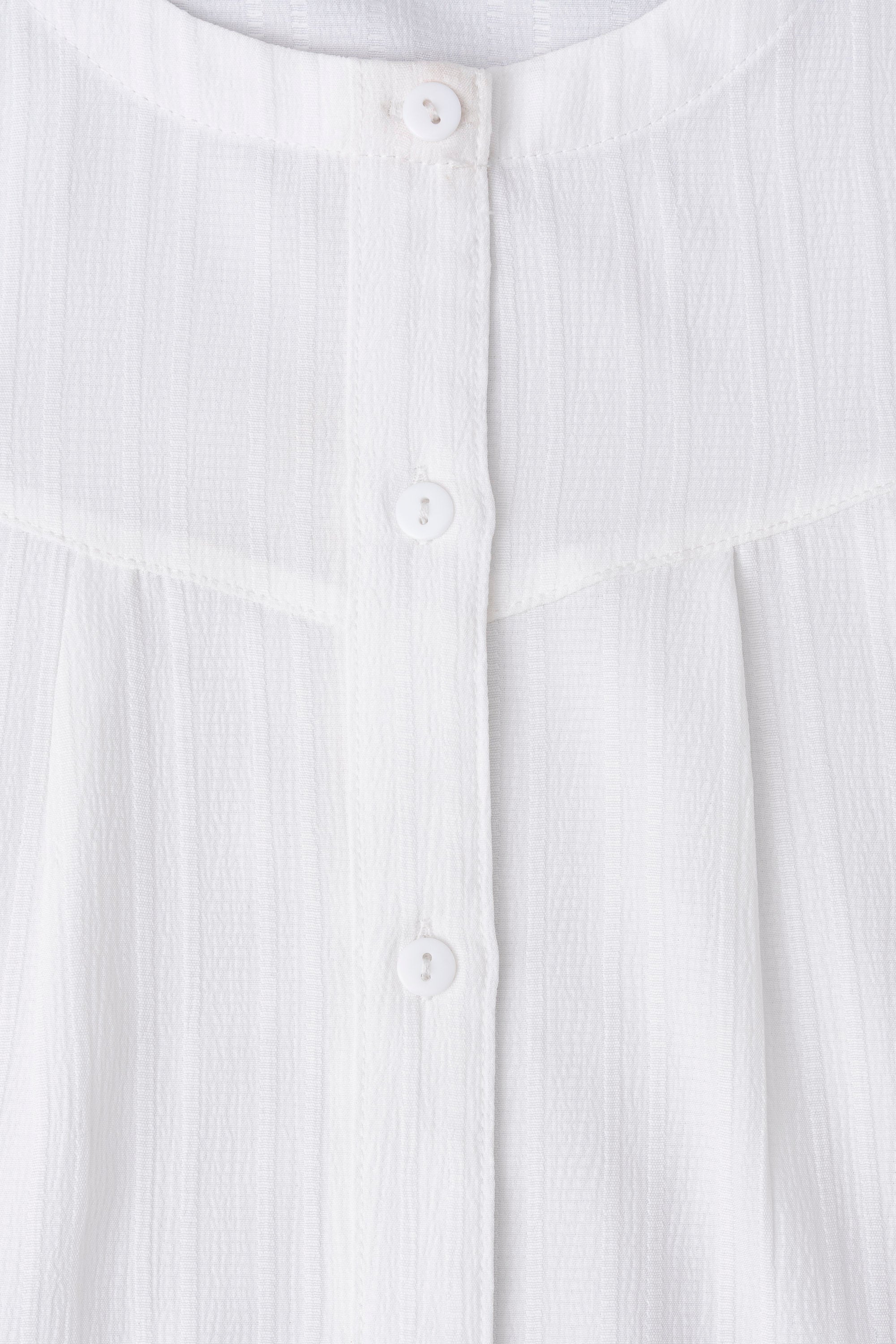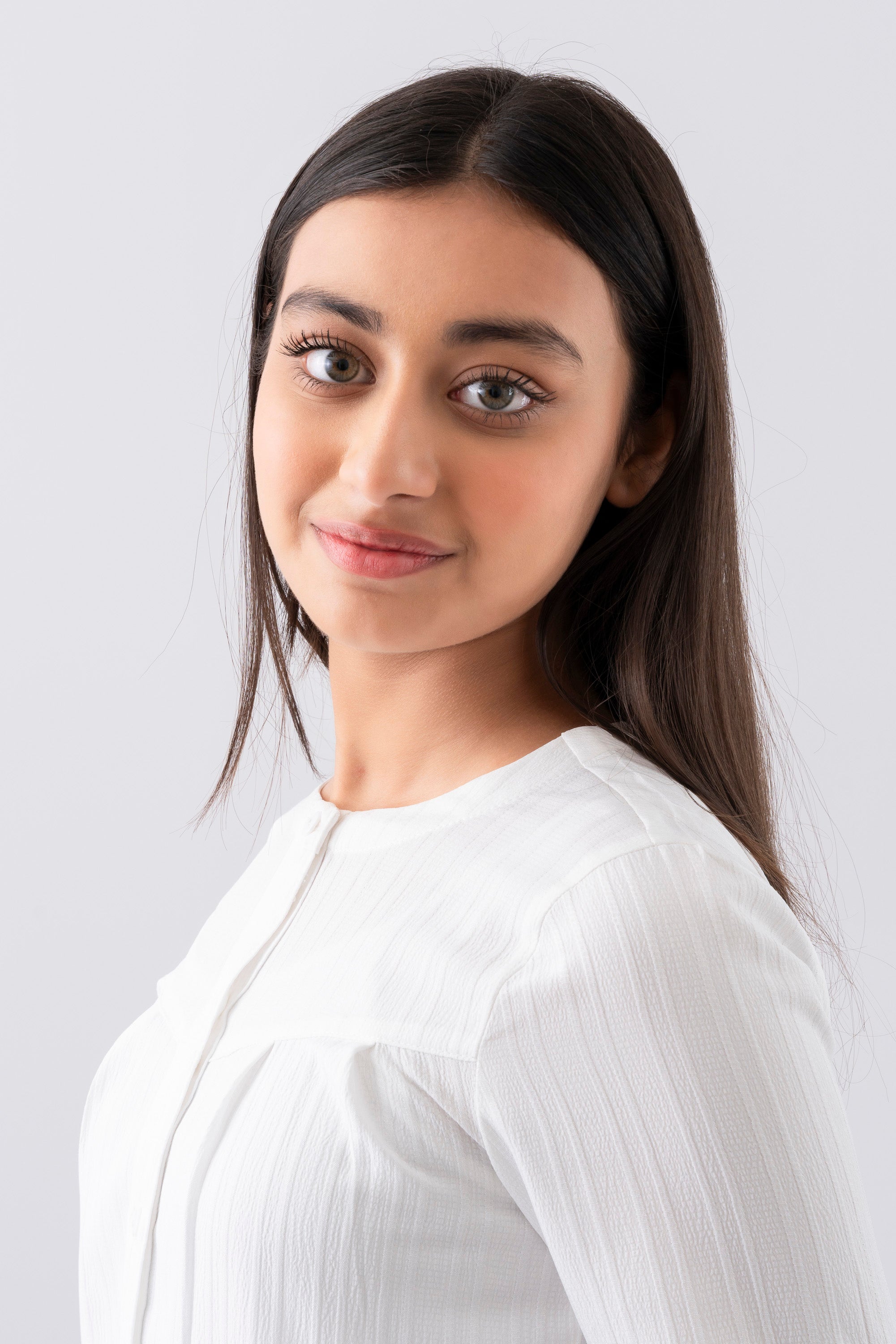 • Solid color, full length sleeve, round neck line, front yoke with dart, high low bottom, front opening with button placket.