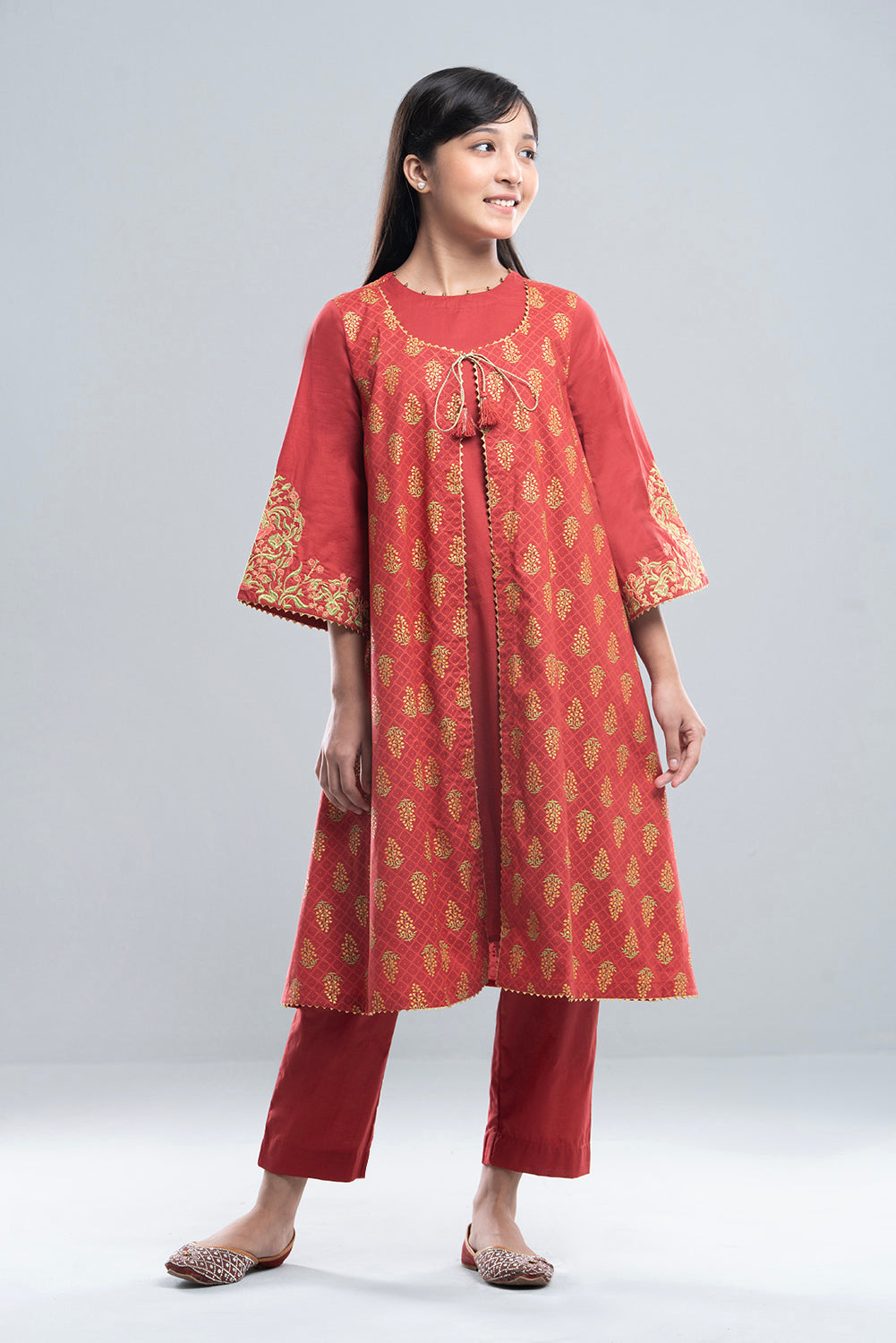 • The front is adorned with traditional afsan print, creating a timeless ethnic charm.