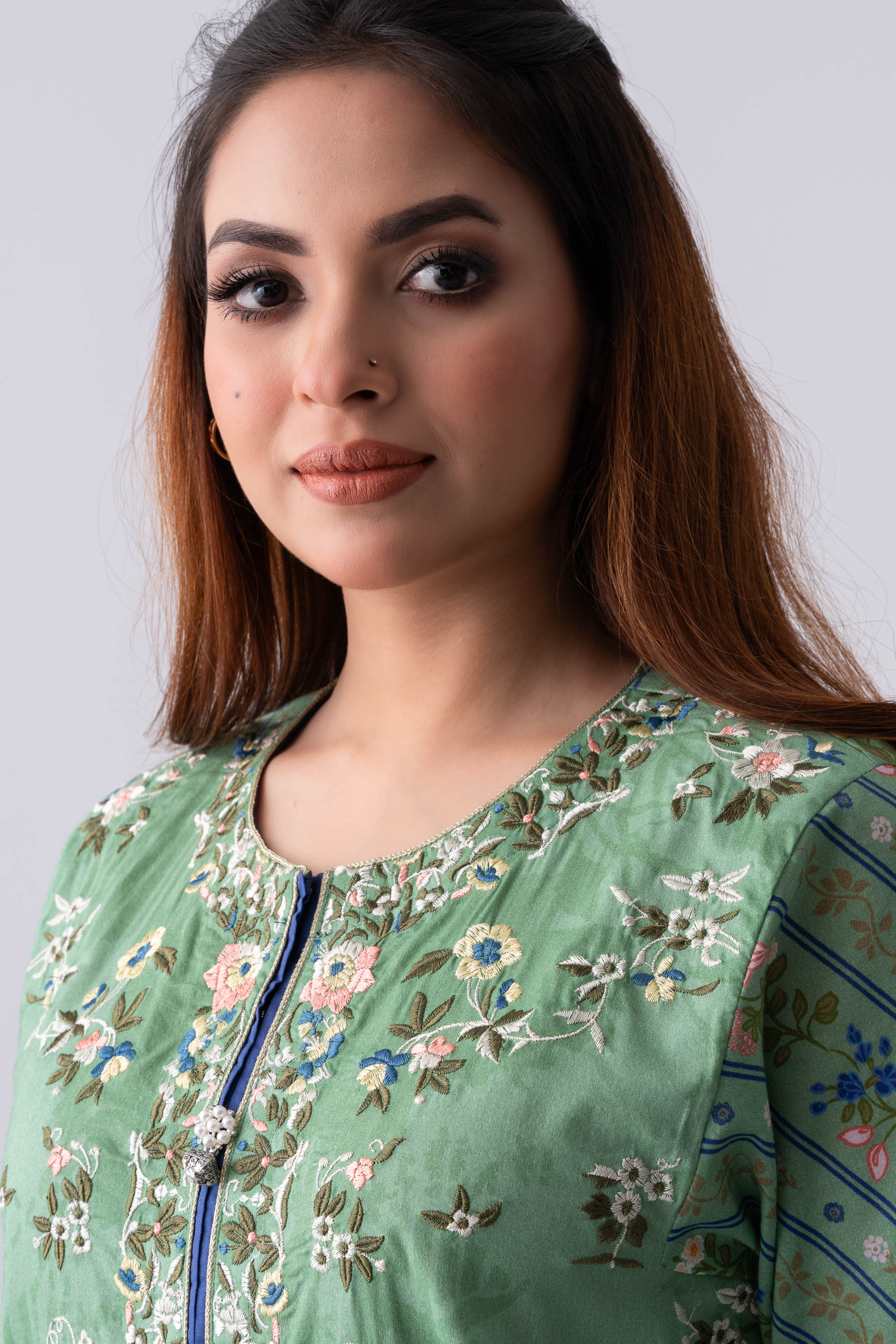 Elevate your elegance with our stunning ready-to-wear 2-piece lawn kameez suit, paired with a luxurious silk dupatta. Featuring full front embroidery, intricate gold lace, and exquisite decorative button and pearl detailing, this ensemble radiates sophistication. Perfect for special occasions or adding a touch of luxury to your everyday wardrobe.