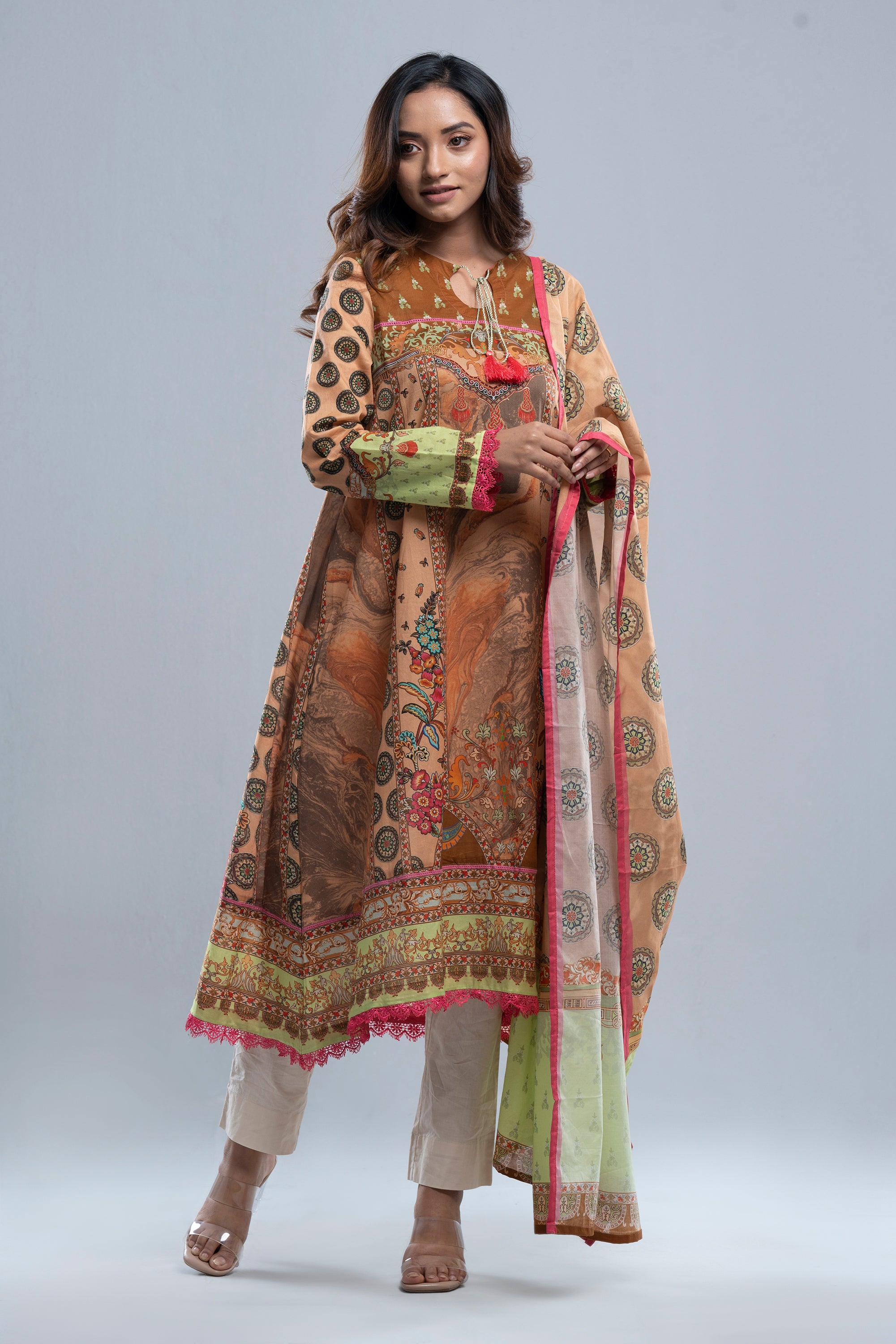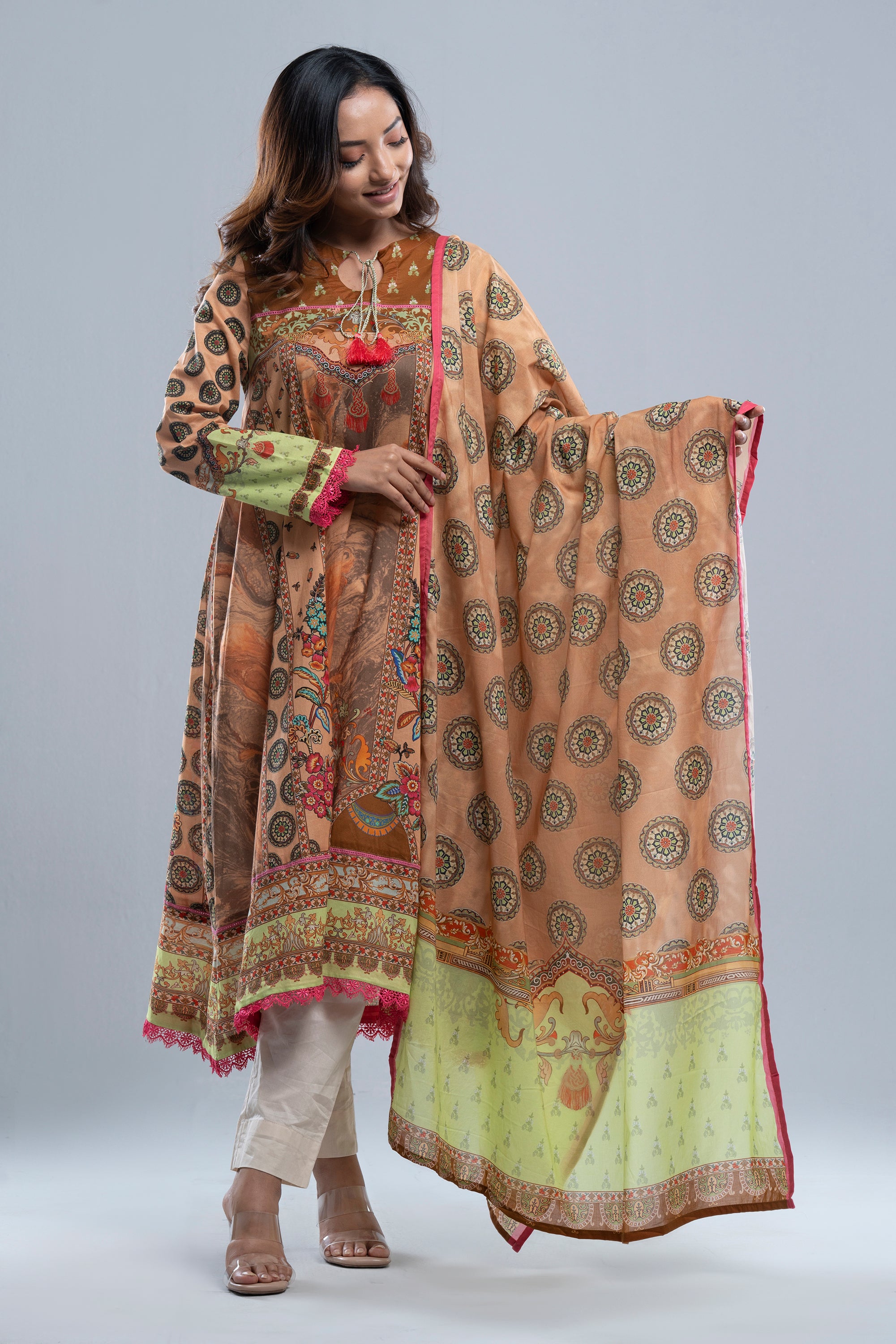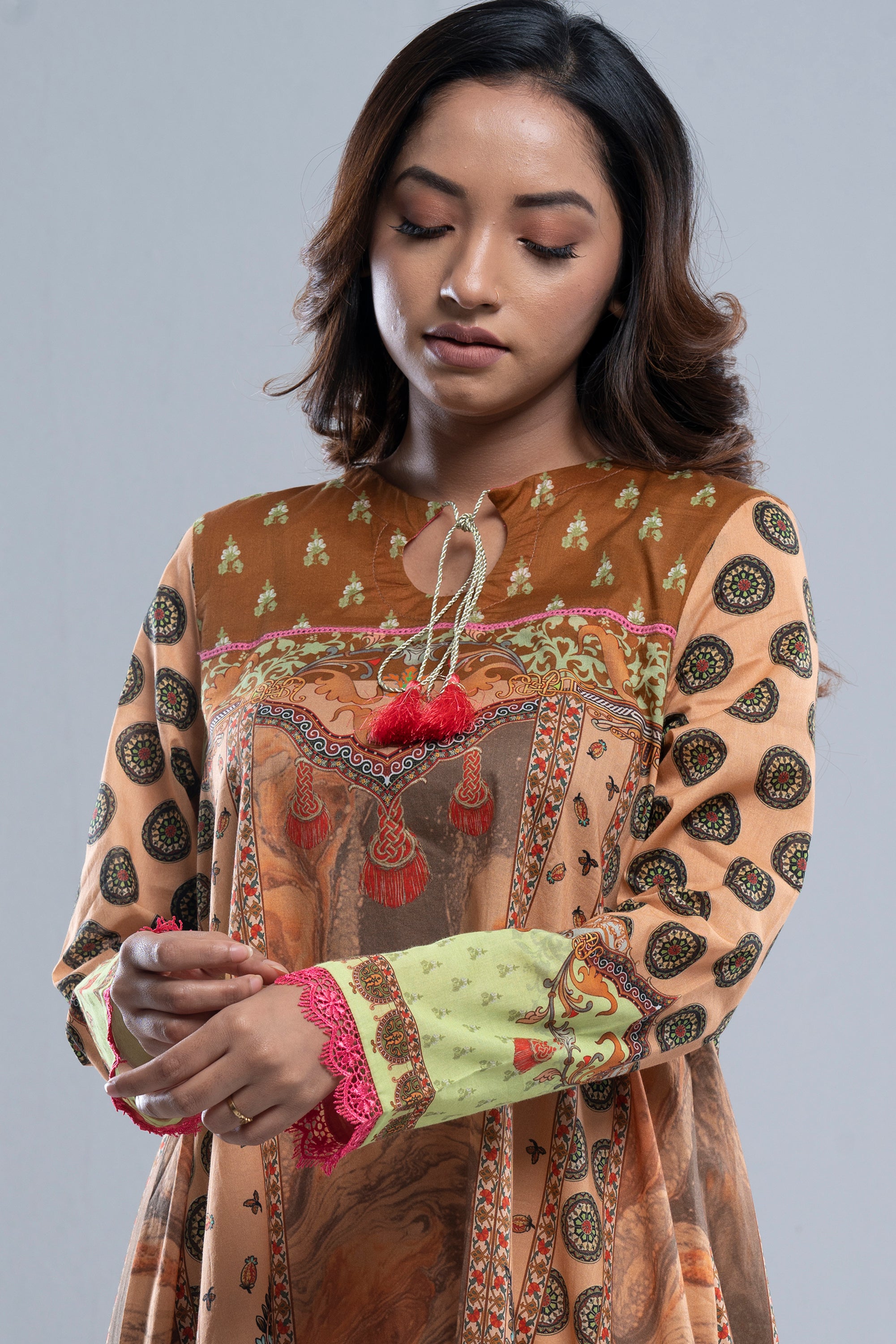 Elevate your everyday style with our stunning ready-to-wear 2-piece lawn suit. Featuring an empire line cut with Key-hole and a graceful flare, this piece is adorned with tassels and decorative lace on the sleeves and hem, adding a touch of sparkle. Combining comfort and elegance, it’s the perfect choice for any occasion.