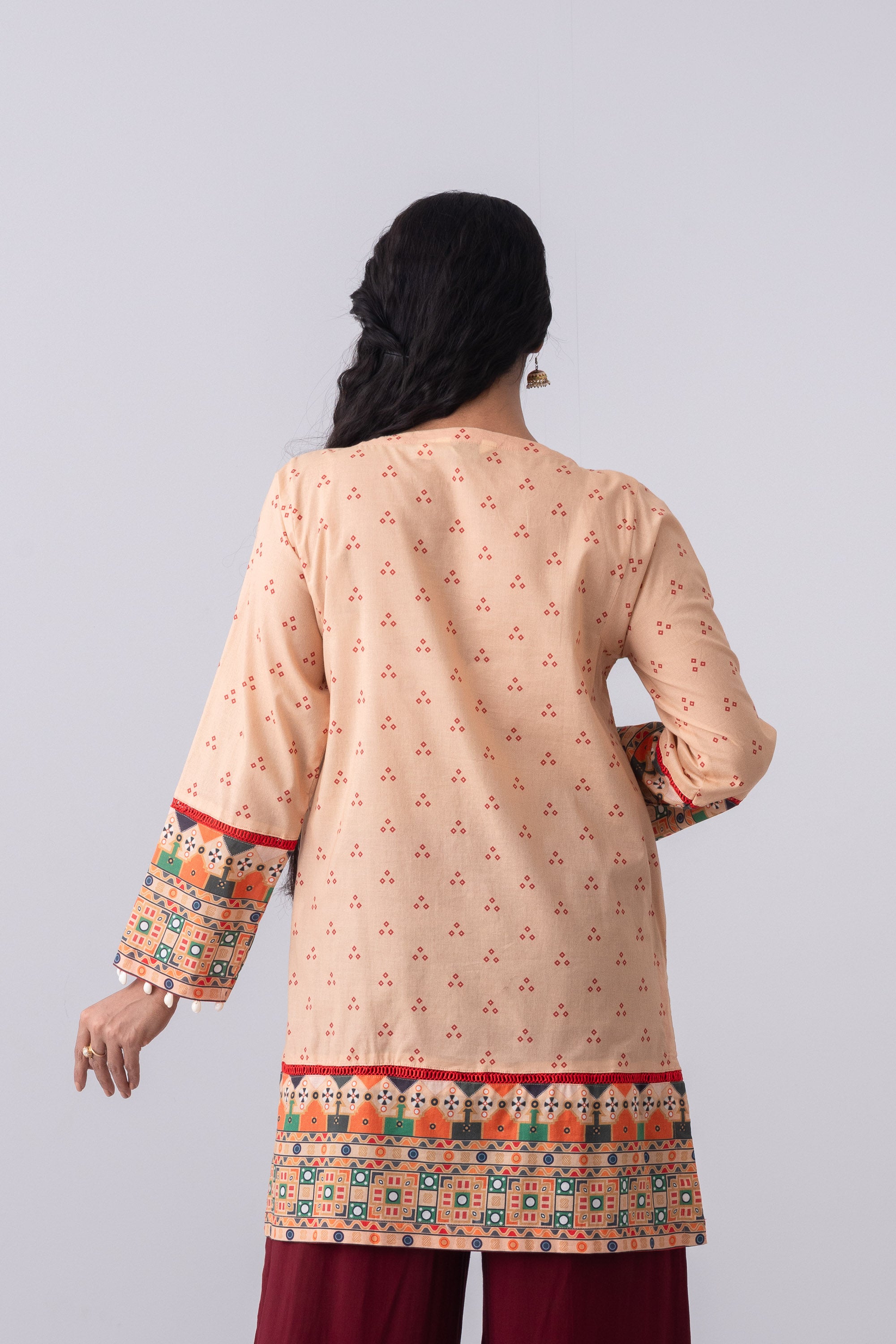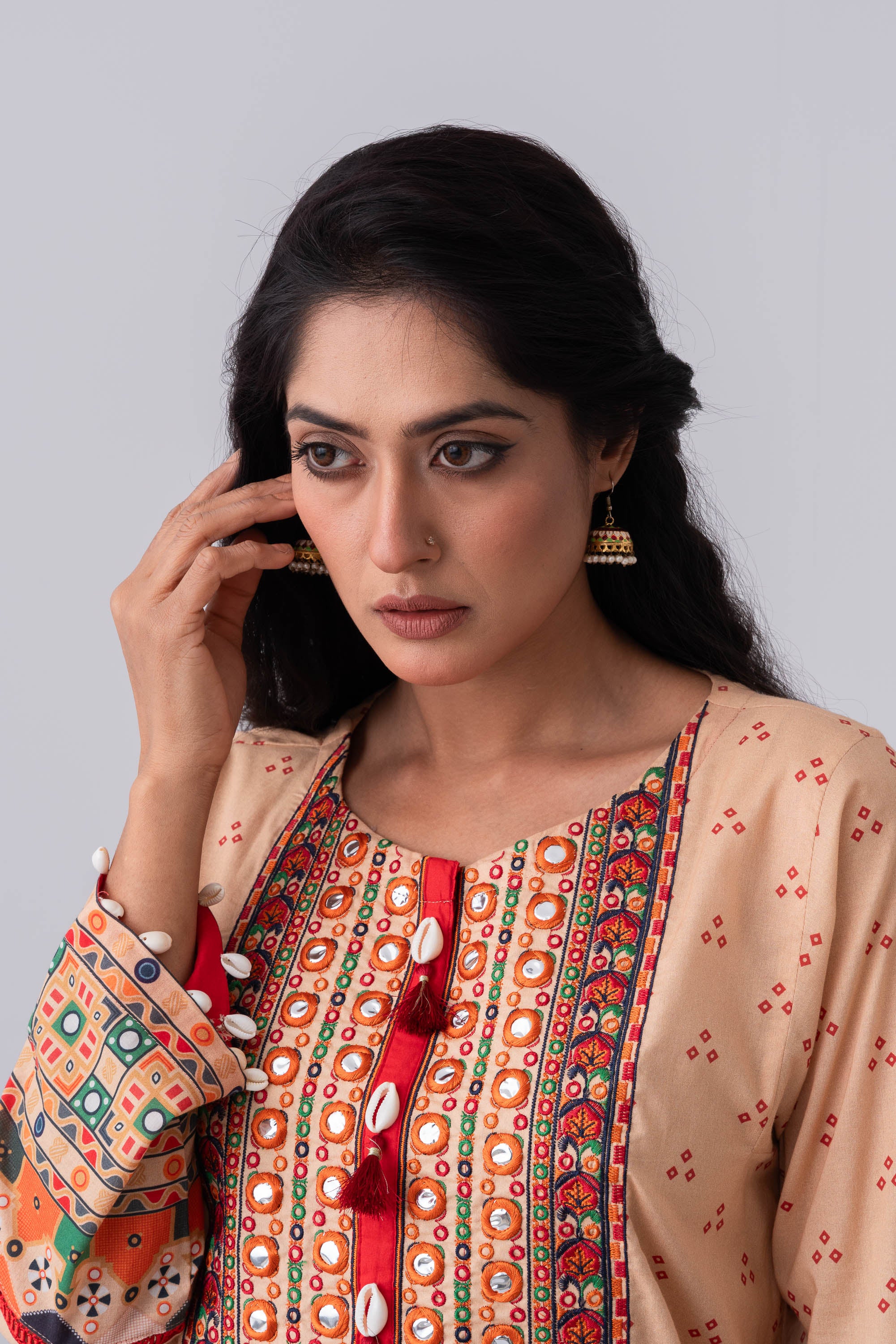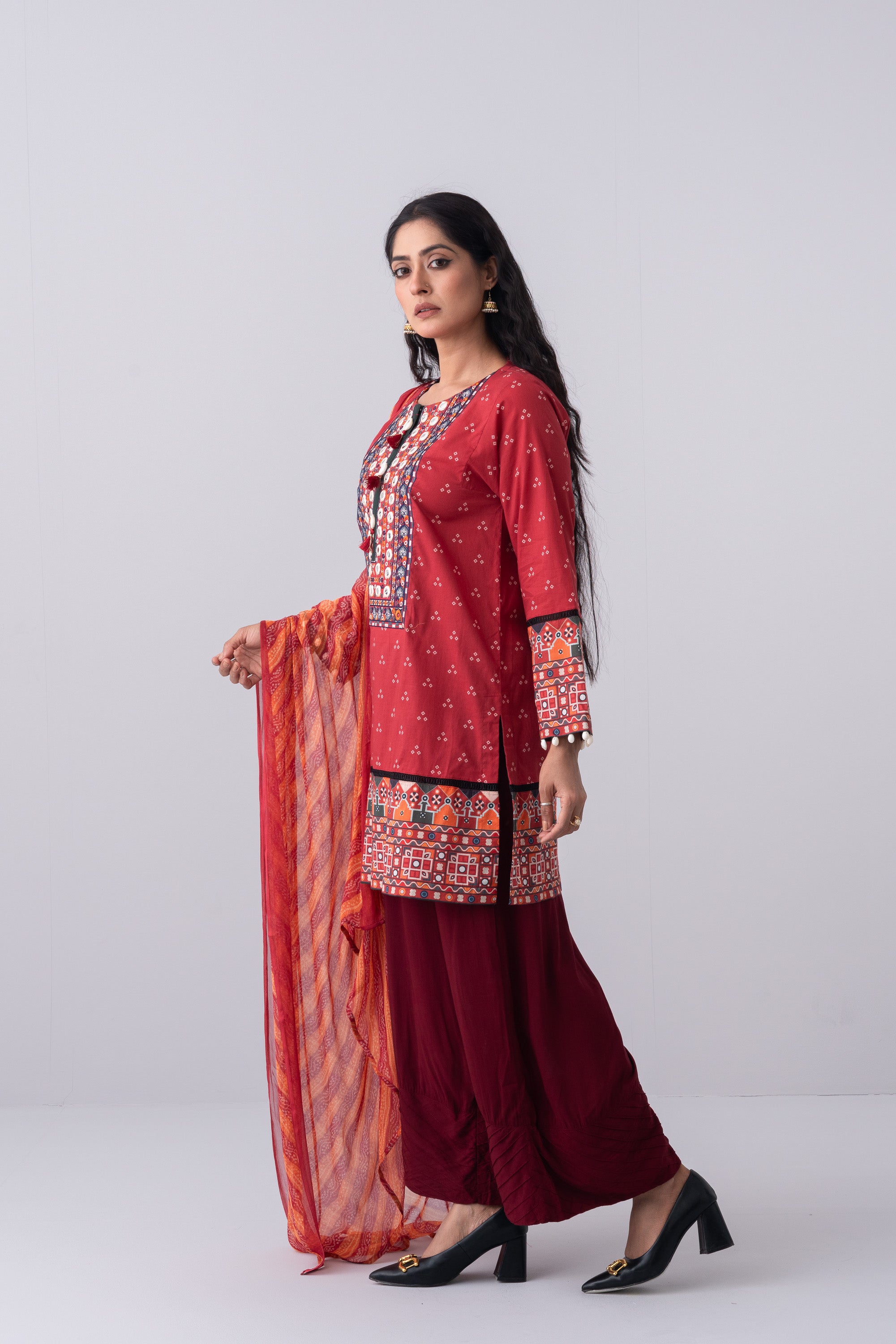 Elevate your elegance with our stunning ready-to-wear 2-piece lawn kameez suit, paired with a chiffon dupatta. Embellished with a contrast placket, embroidery with dollar work, decorative tassels, and cowrie shell detailing, this outfit exudes sophistication and charm. Perfect for special occasions or adding a touch of luxury to your everyday wardrobe.
