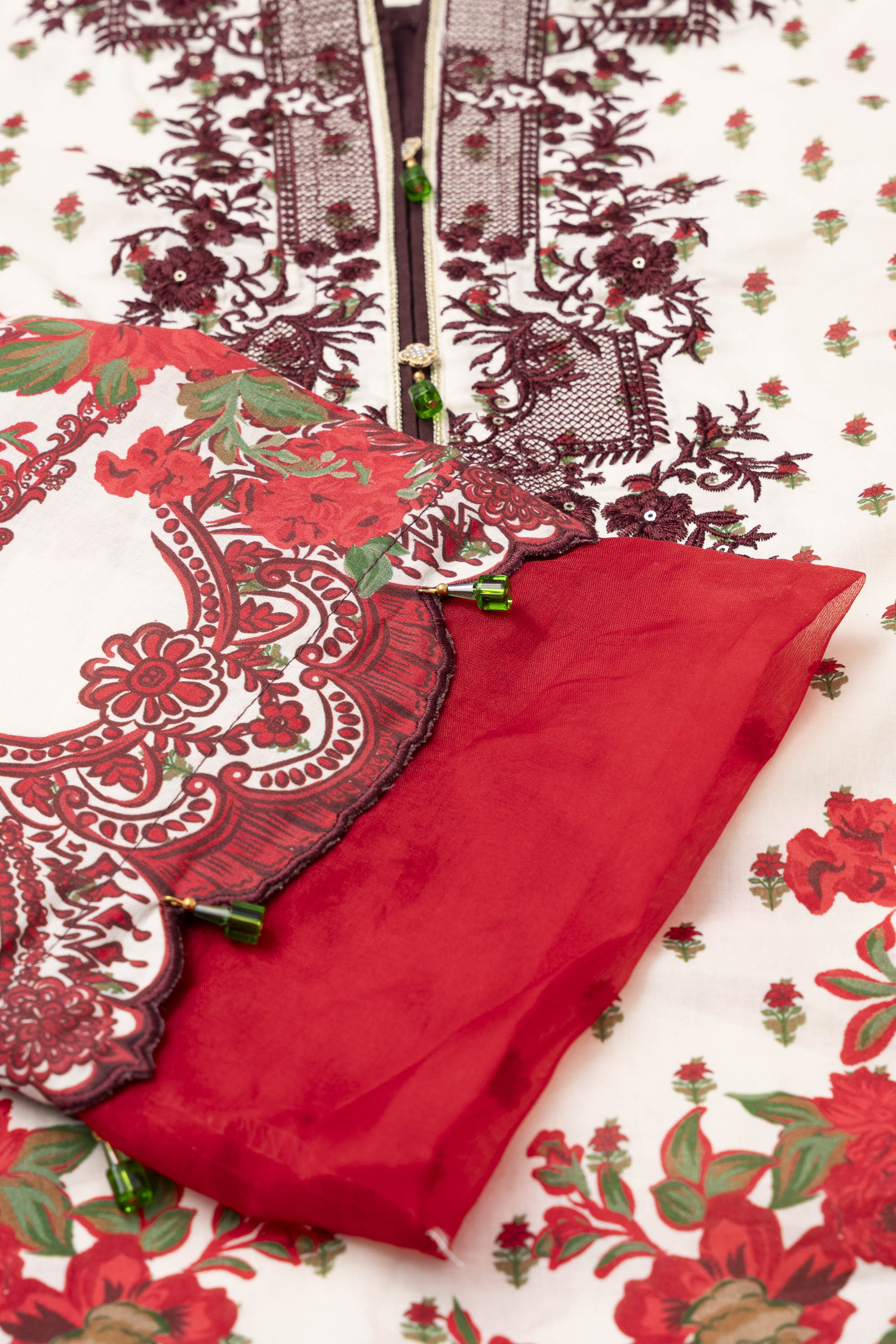 Enhance your style with our ready-to-wear 2-piece lawn kameez suit, complemented by a cotton dupatta. The suit features delicate embroidery, beaded tassels, muslin detailing, and fabric cutwork, creating a refined and elegant look. Perfect for special occasions or adding a touch of sophistication to your daily wear.