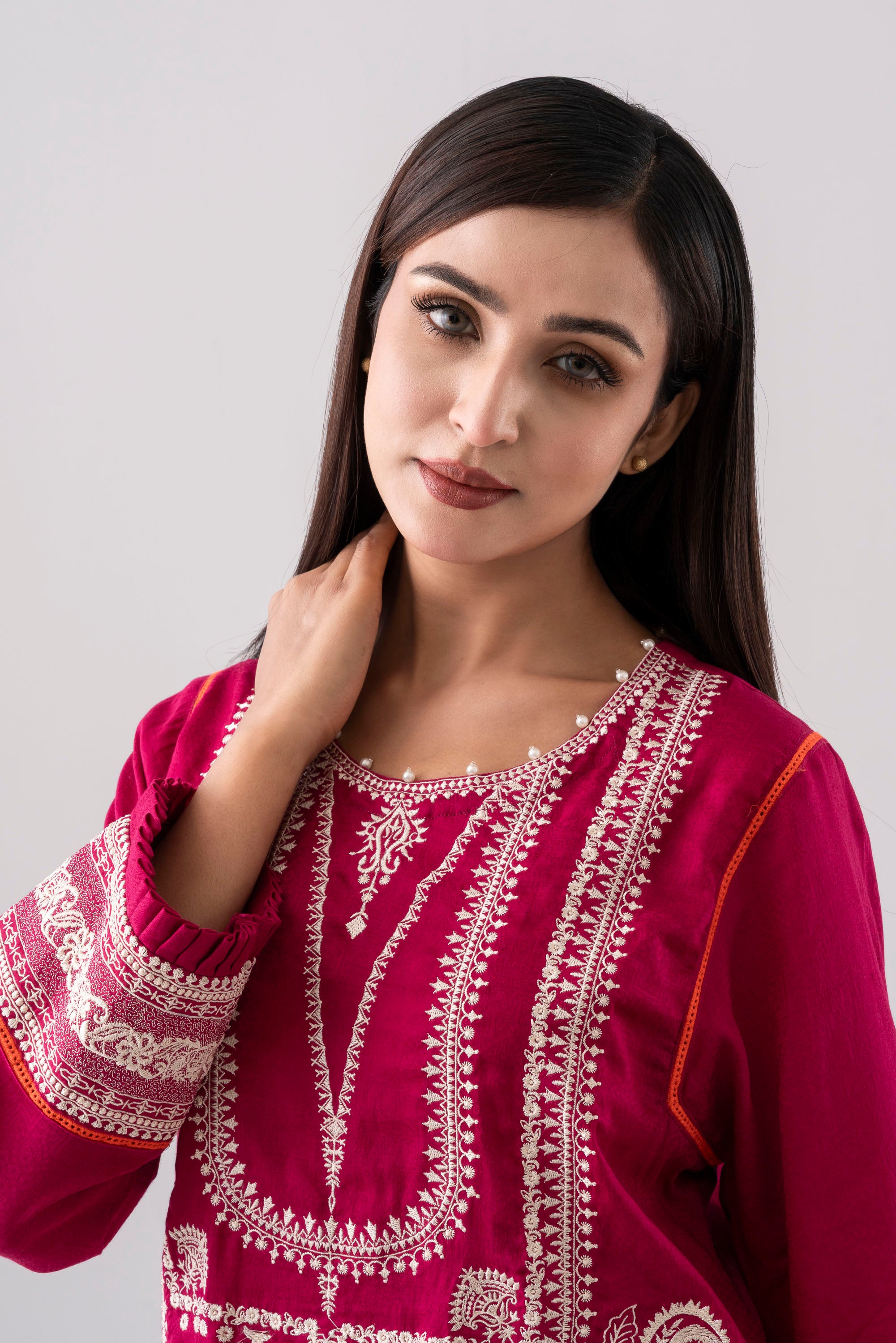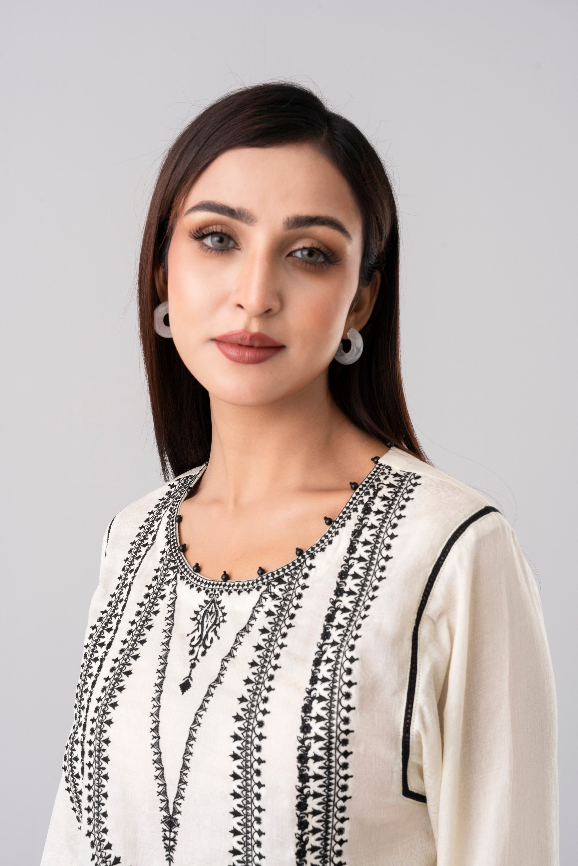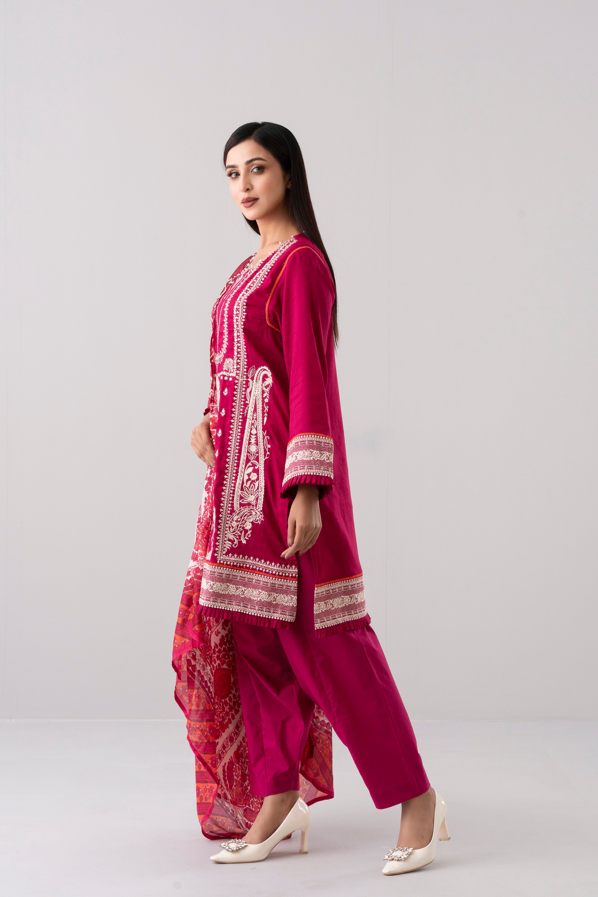 Elevate your elegance with our stunning ready-to-wear 3-Piece Lawn Jacquard Salwar Kameez Suit, beautifully adorned with full front embroidery and delicate decorative lace. Designed with full sleeves featuring self-fabric pleats and an embroidered border, and tailored in a relaxed fit with a square armhole, the kameez is finished with a gracefully embellished neckline with pearl accents. Paired with a solid dyed salwar and a luxurious silk dupatta, this ensemble is perfect for festive occasions or for adding timeless sophistication to your everyday wardrobe.