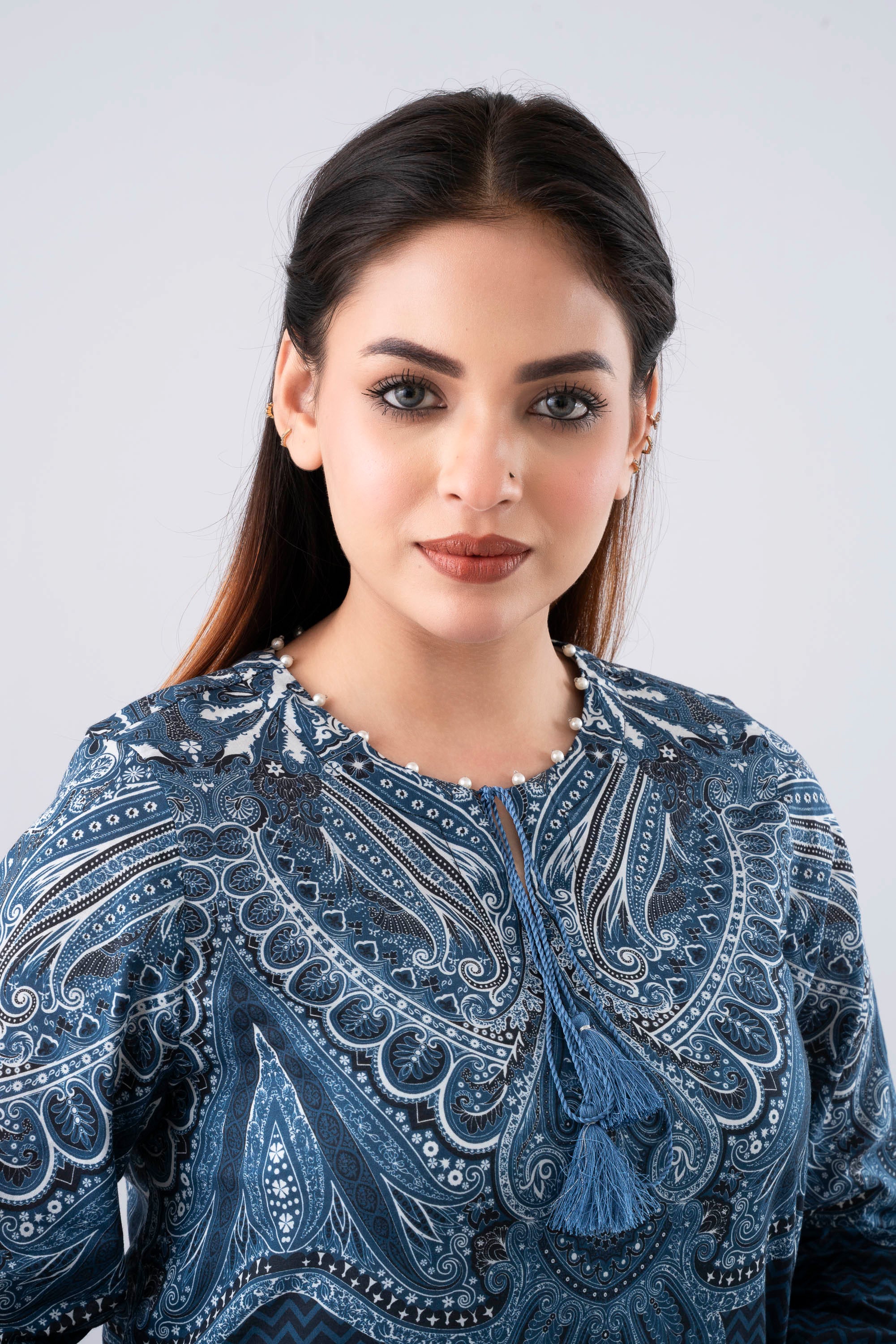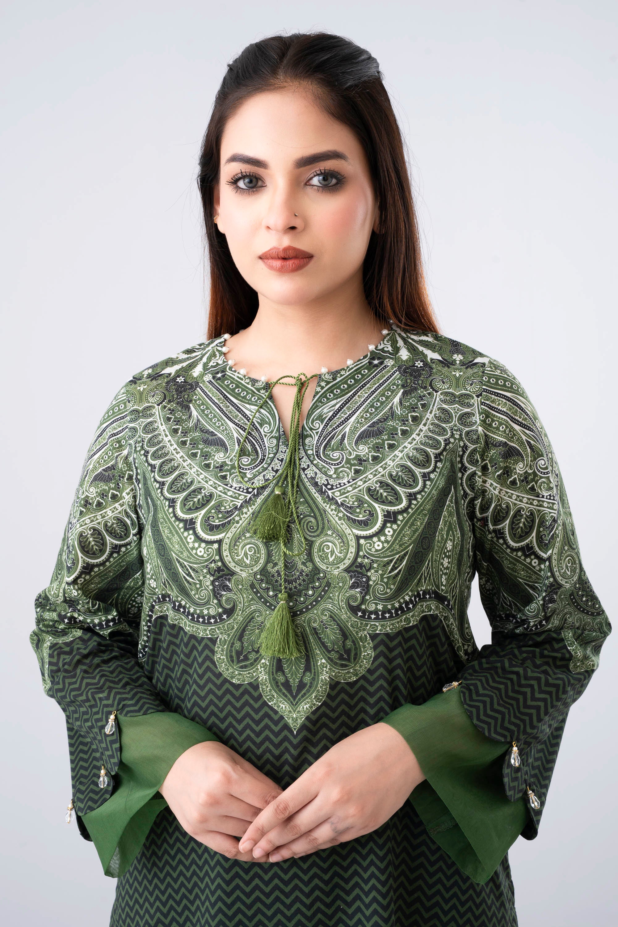 Elevate your elegance with our stunning ready-to-wear 3 Piece Lawn Salwar Kameez Suit with chffon dupatta and matching printed trouser embellished with beaded tassels, organza detailing, and fabric cutwork, creating a refined and elegant look. Perfect for special occasions or adds luxury to your everyday wardrobe.