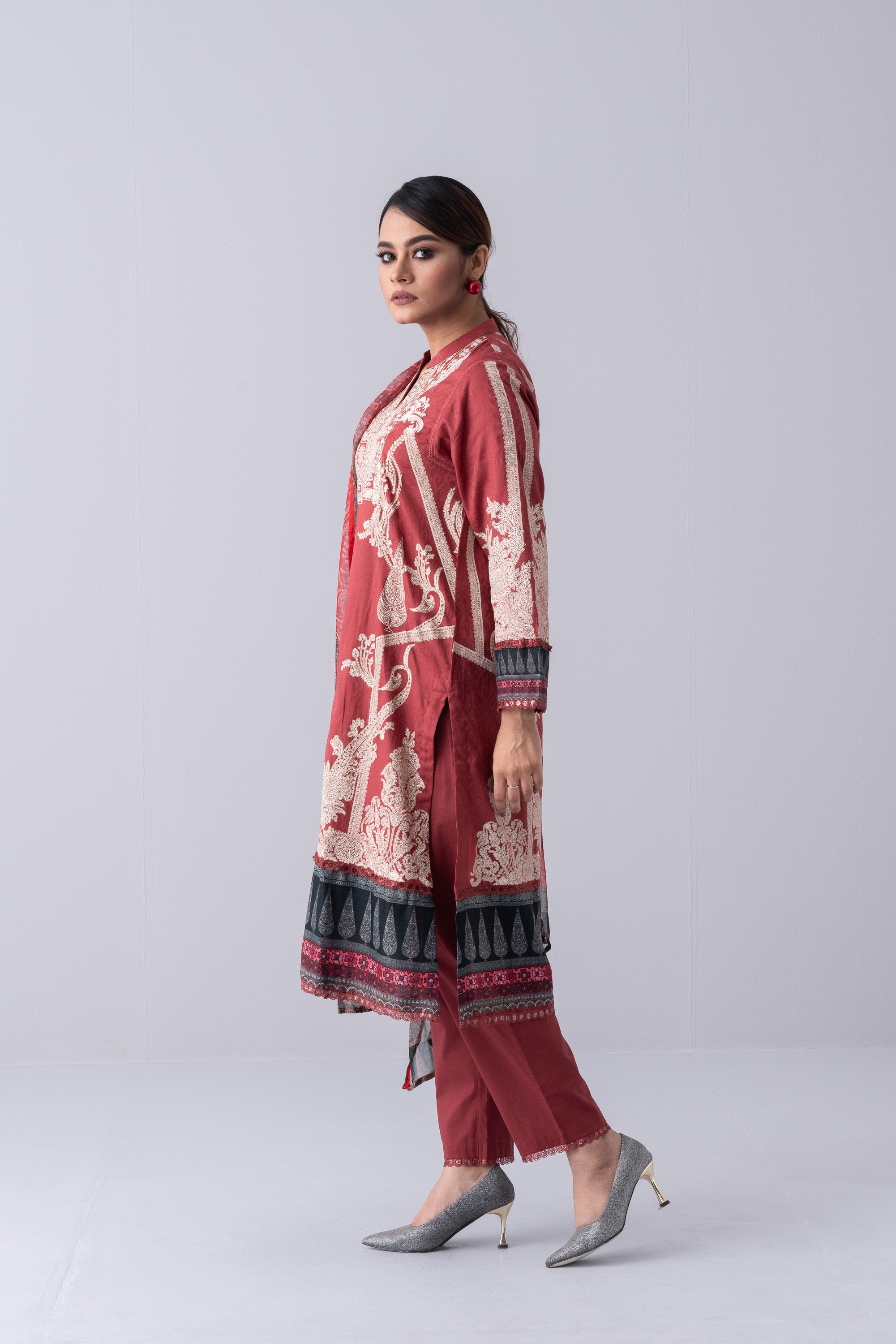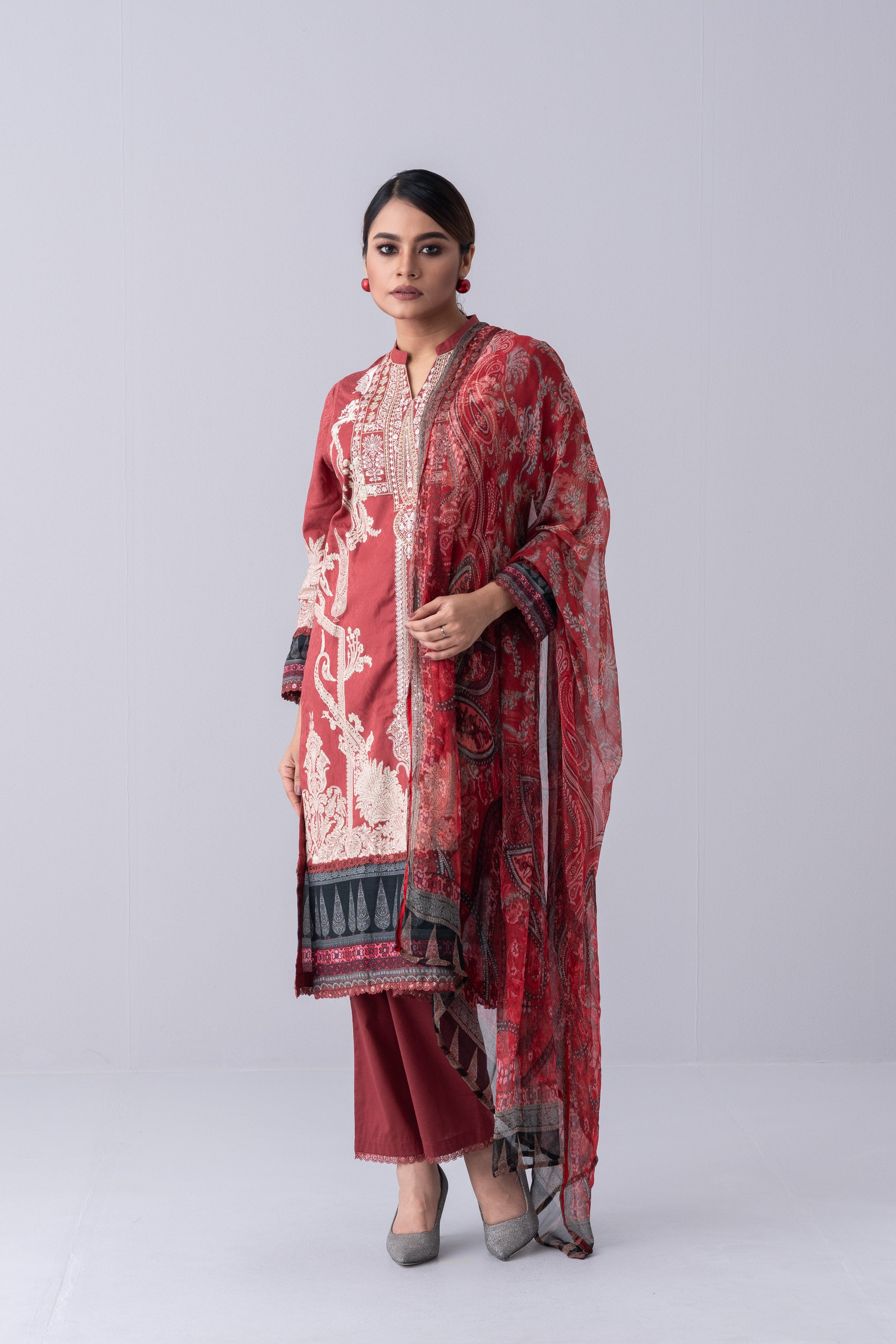 Elevate your elegance with our stunning ready-to-wear 3 Piece Lawn Salwar Kameez Suit with chiffon dupatta and solid dyed pant embellished with sequin embroidery,print, decorative lace detailing that exudes elegance and sophistication,perfect for special occasions or adds luxury to your everyday wardrobe.