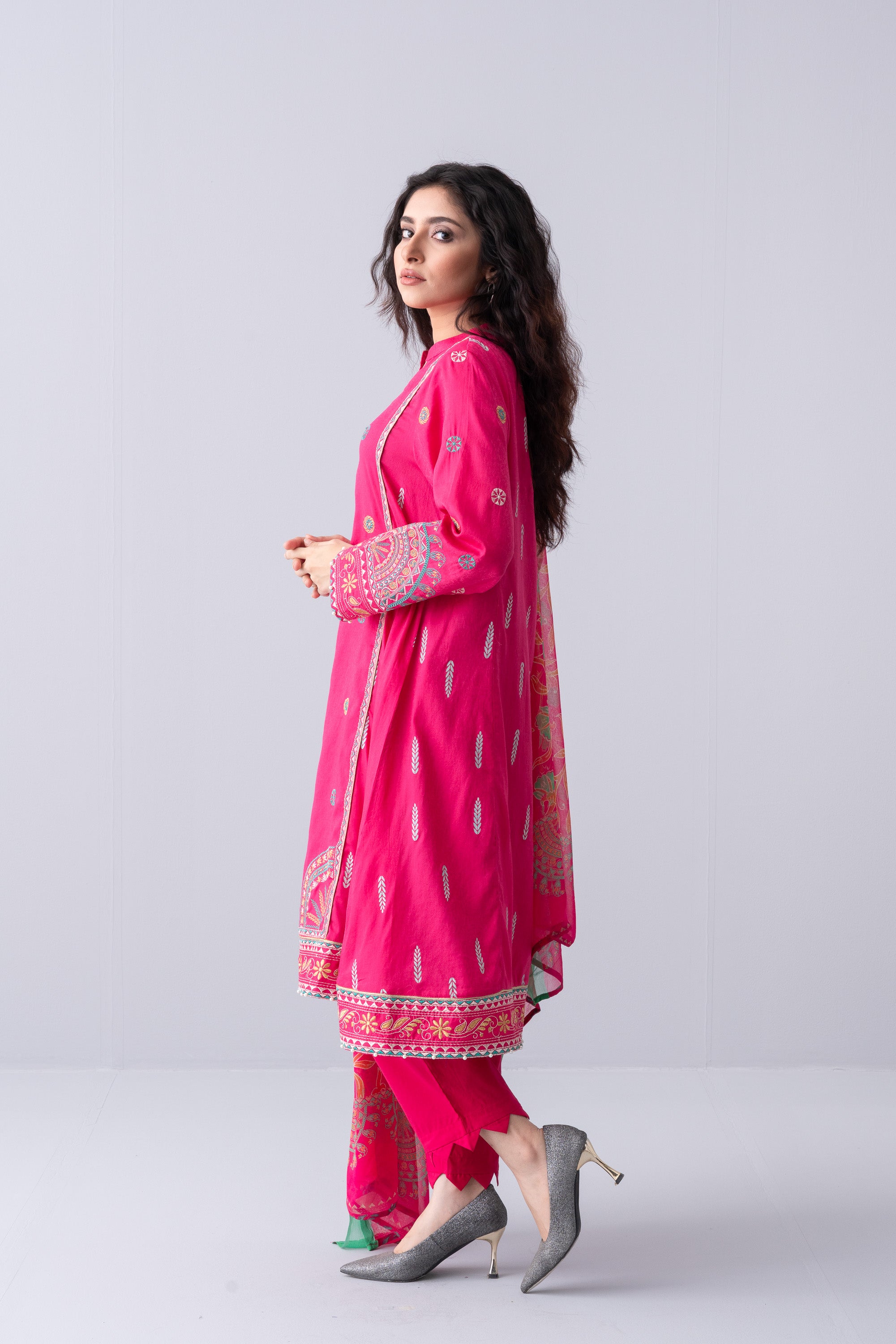 Elevate your elegance with our stunning ready-to-wear 3 Piece Lawn Salwar Kameez Suit, featuring full embroidery and screen print, decorative button and pearl detailing with a luxurious chiffon dupatta. The ensemble is completed with a solid dyed relaxed-fit pant, adorned with delicate fabric triangle detailing, offering a perfect blend of sophistication and comfort—ideal for special occasions or adding a touch of luxury to your everyday wardrobe.