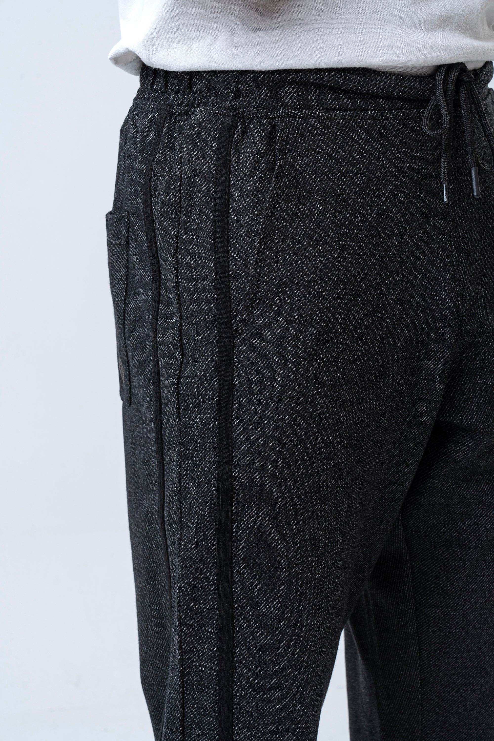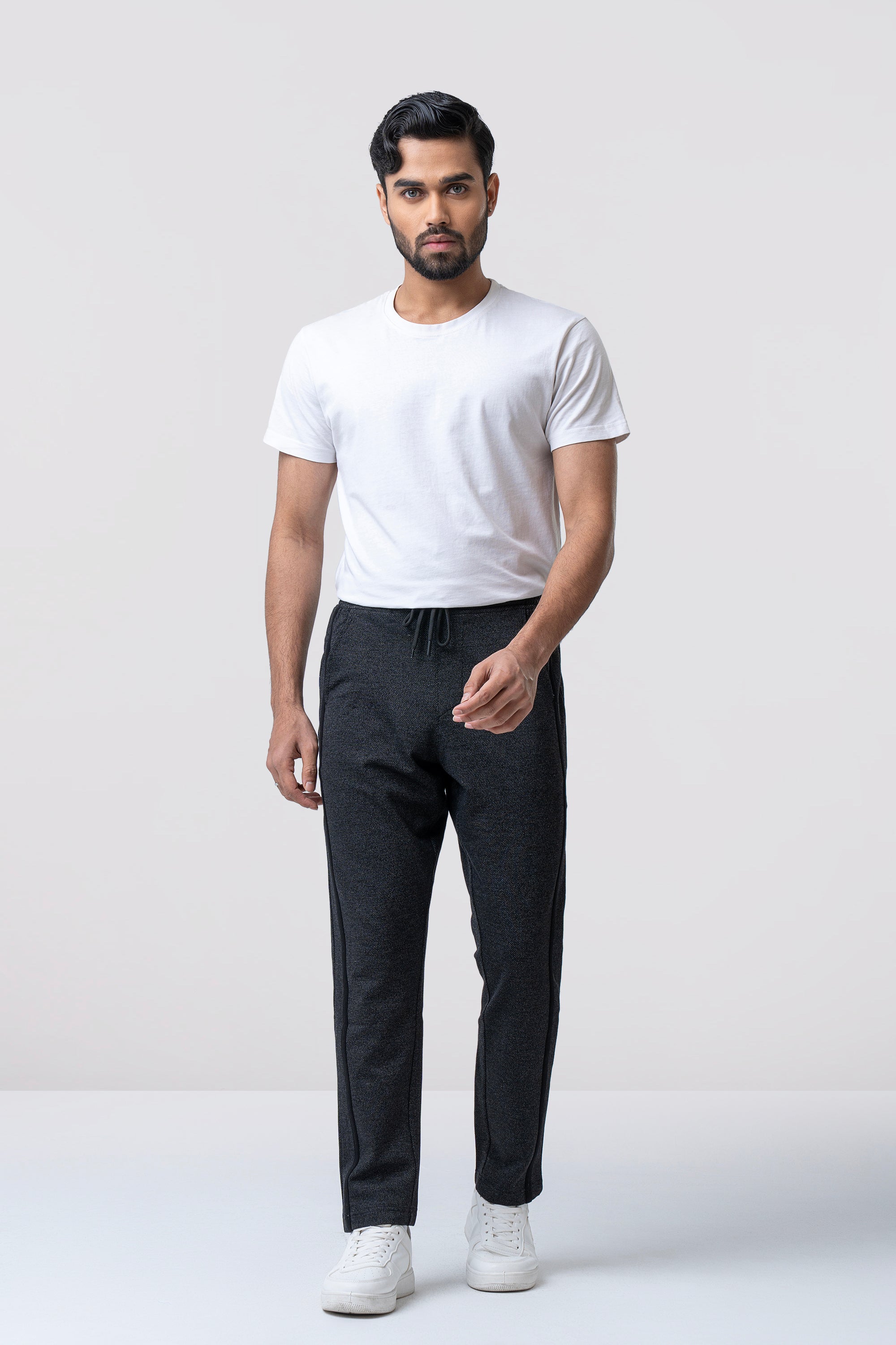 Designed with a clean athletic profile and subtle utility detailing, this athleisure trouser delivers everyday comfort with a refined, modern edge. Crafted from a soft, breathable performance fabric, it delivers a smooth hand feel while allowing unrestricted mobility. The elasticated waistband with adjustable drawcord provides a secure and comfortable fit. Vertical contrast side panels enhance the silhouette and add a sporty visual accent. The front welt pockets create a sleek, minimal look, offering practicality without added bulk. At the back, a neatly finished functional pocket is elevated with subtle embroidery, adding a signature detail and premium character. This silhouette keeps the look modern and versatile.