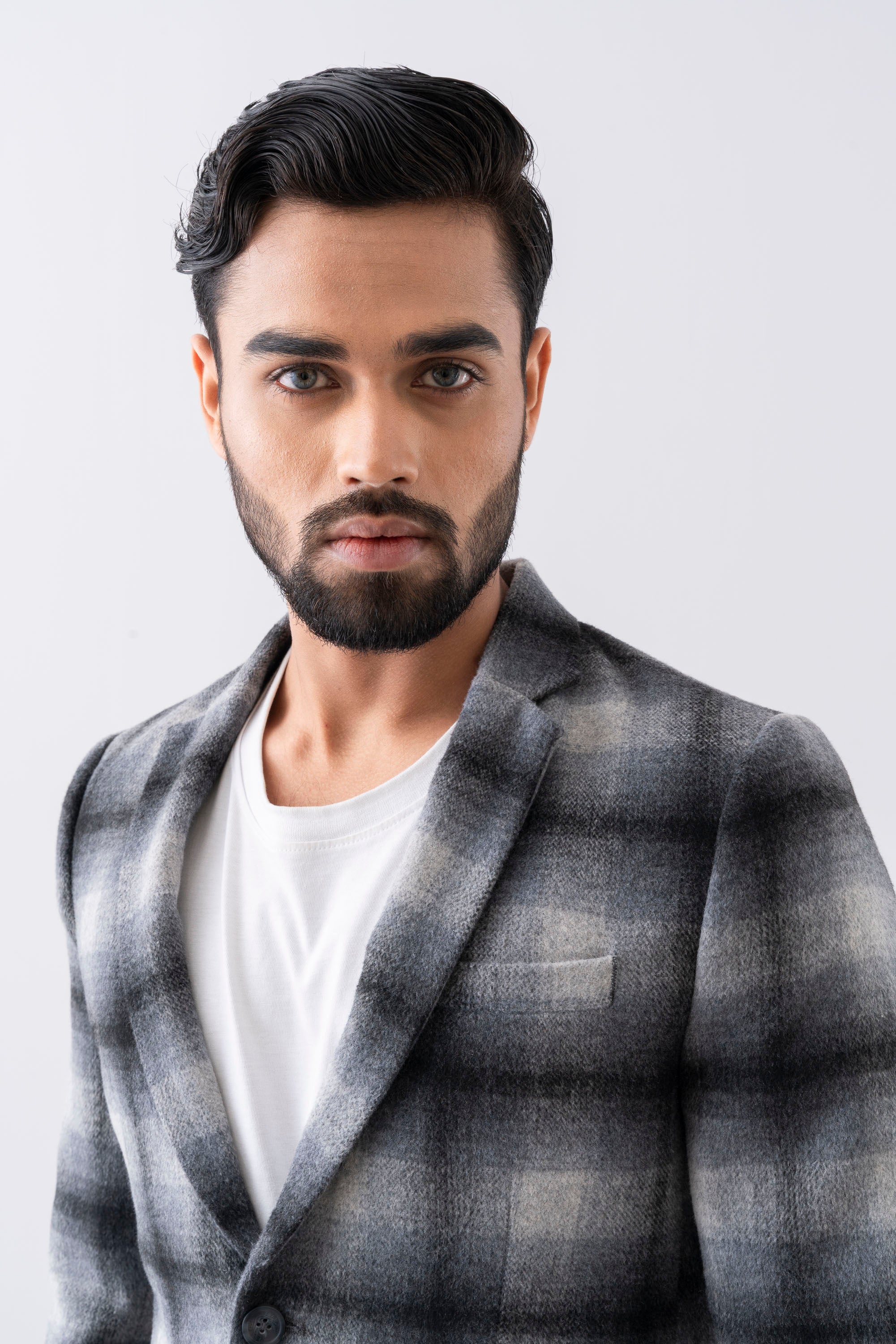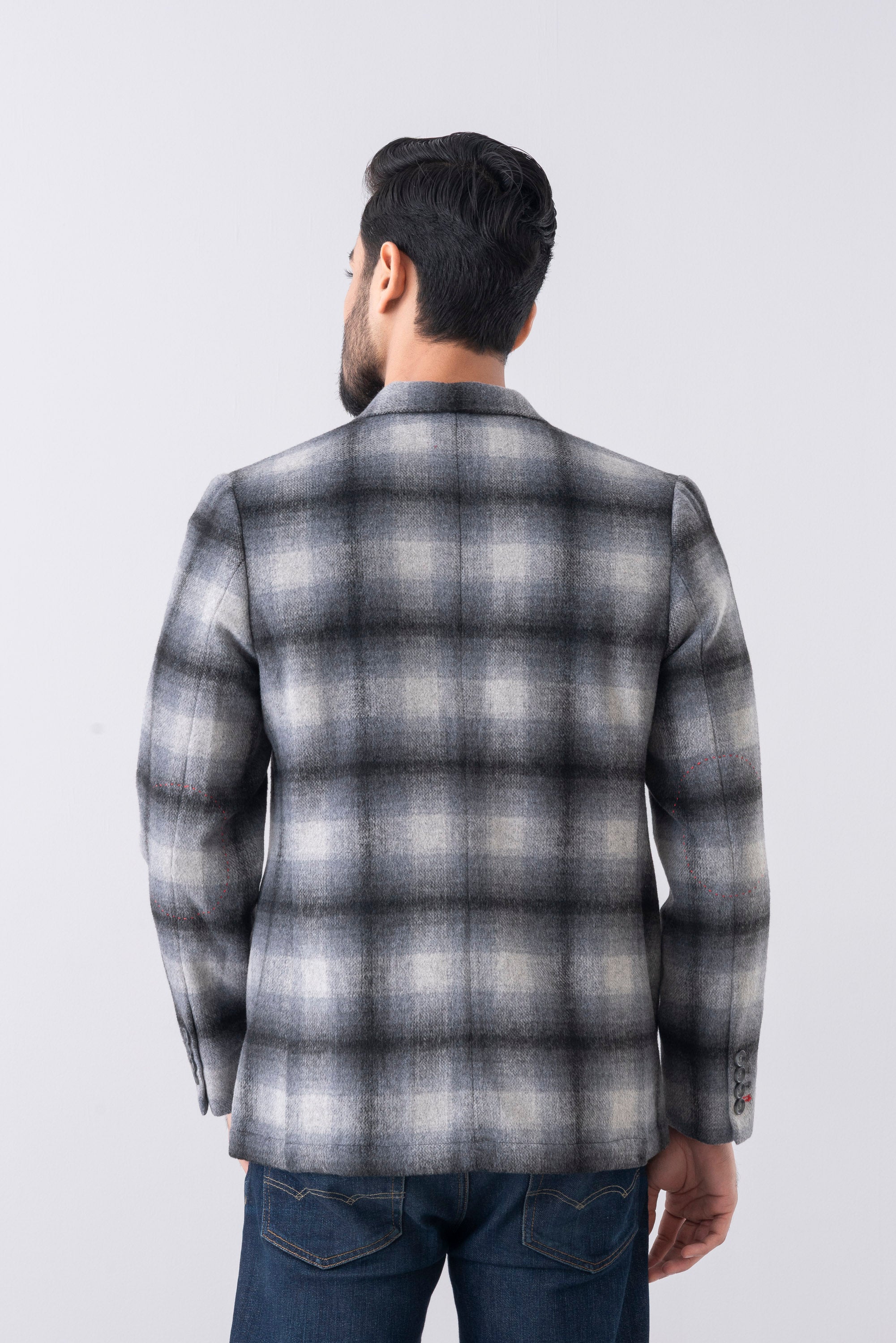 Men’s bold check blazer crafted from premium brushed-top fabric, offering a soft texture and refined appearance. Designed with a classic notch collar, contrast saddle stitch detailing, and horn buttons for a sophisticated touch. The contrast interior adds a modern twist to this timeless piece.