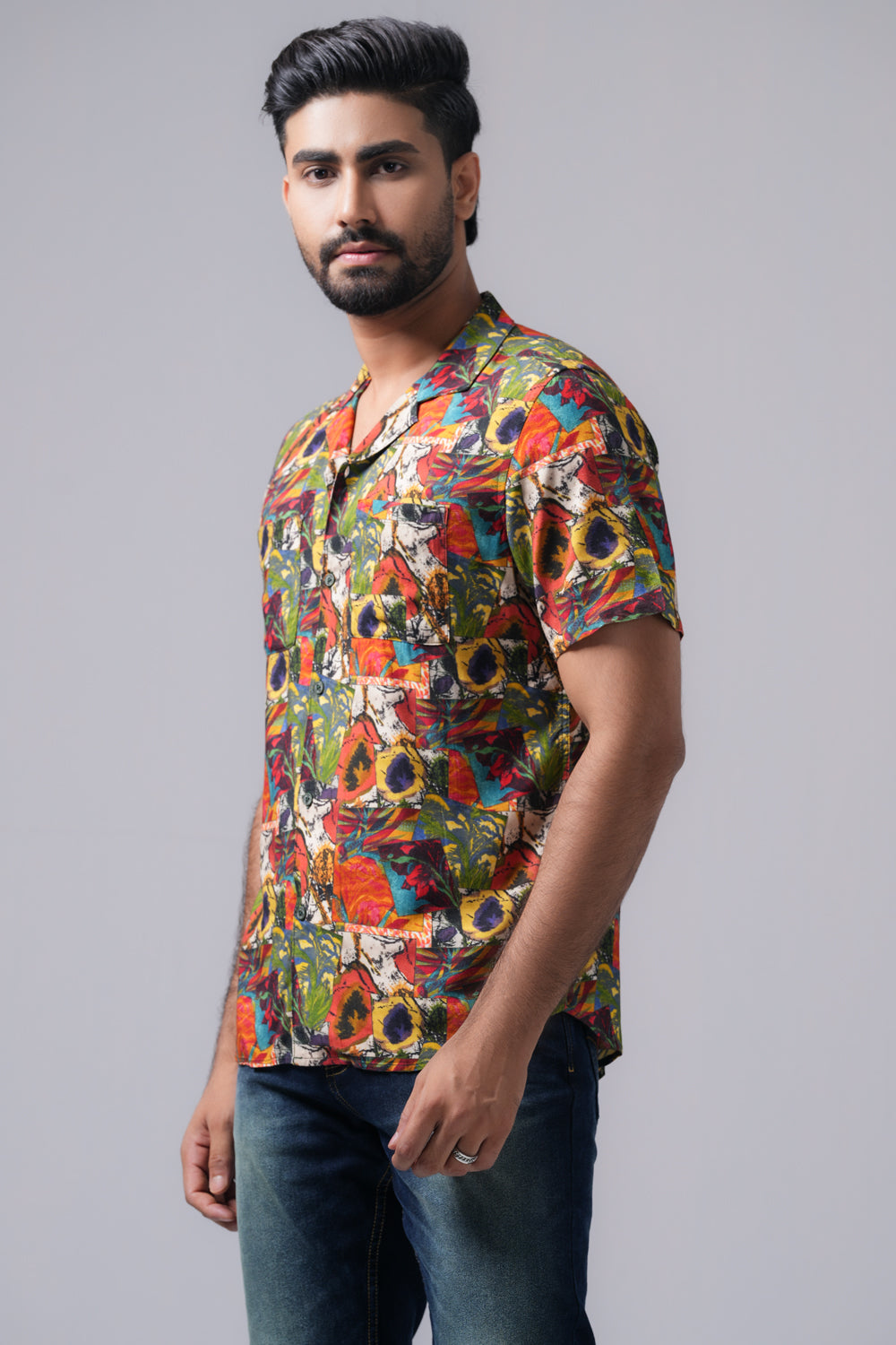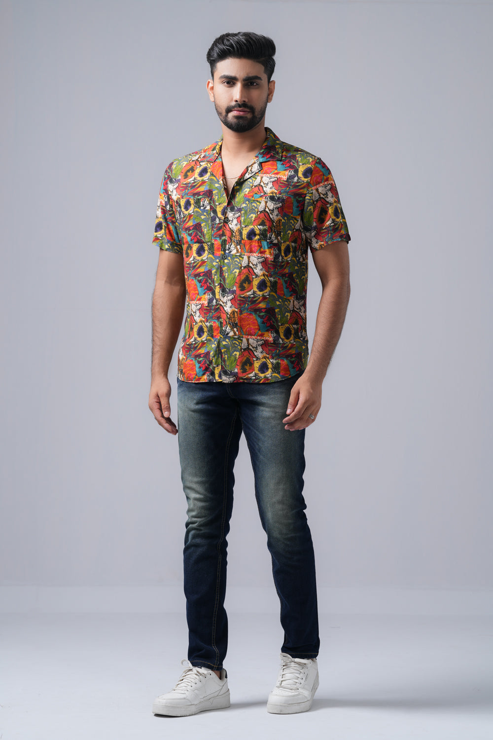 Upgrade your casual wardrobe with this short sleeve digital printed regular fit shirt, designed for those who appreciate modern prints and relaxed comfort. Featuring a vibrant digital print, this shirt adds a statement-making touch to your outfit while maintaining a laid-back, effortless vibe. The boxy fit offers a trendy silhouette, while the lapel collar enhances its vintage-inspired appeal. Crafted from lightweight, breathable fabric, it’s perfect for warm-weather wear, casual outings, or streetwear styling.