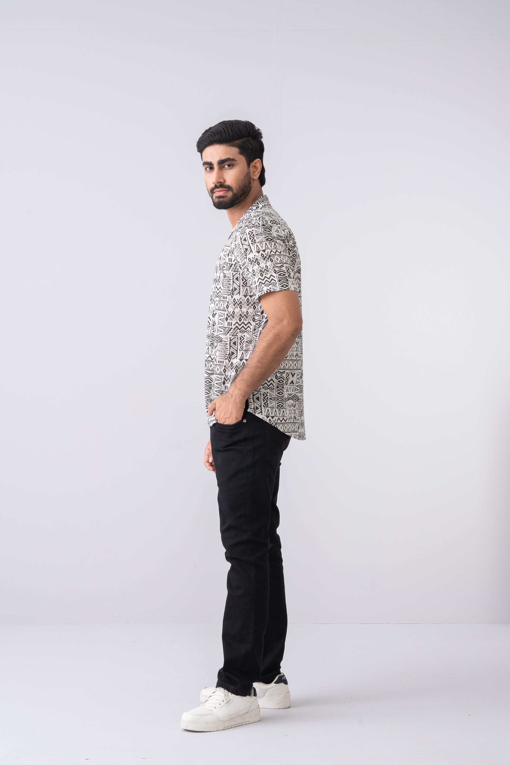 Make a statement with this short sleeve digital printed regular fit shirt, designed for a stylish and contemporary look. Featuring a vibrant digital print, this shirt adds a dynamic and eye-catching element to your wardrobe. The regular fit offers a comfortable, tailored feel, while the lapel collar enhances its classic yet modern appeal. Crafted from lightweight and breathable fabric, it ensures all-day comfort, making it perfect for casual outings, vacations, or summer styling. Regular Fit Men’s Casual Shirt,short sleeve shirt,continious placket with DTM button ,lapel collar,pleat at the back,side slit at the bottom.