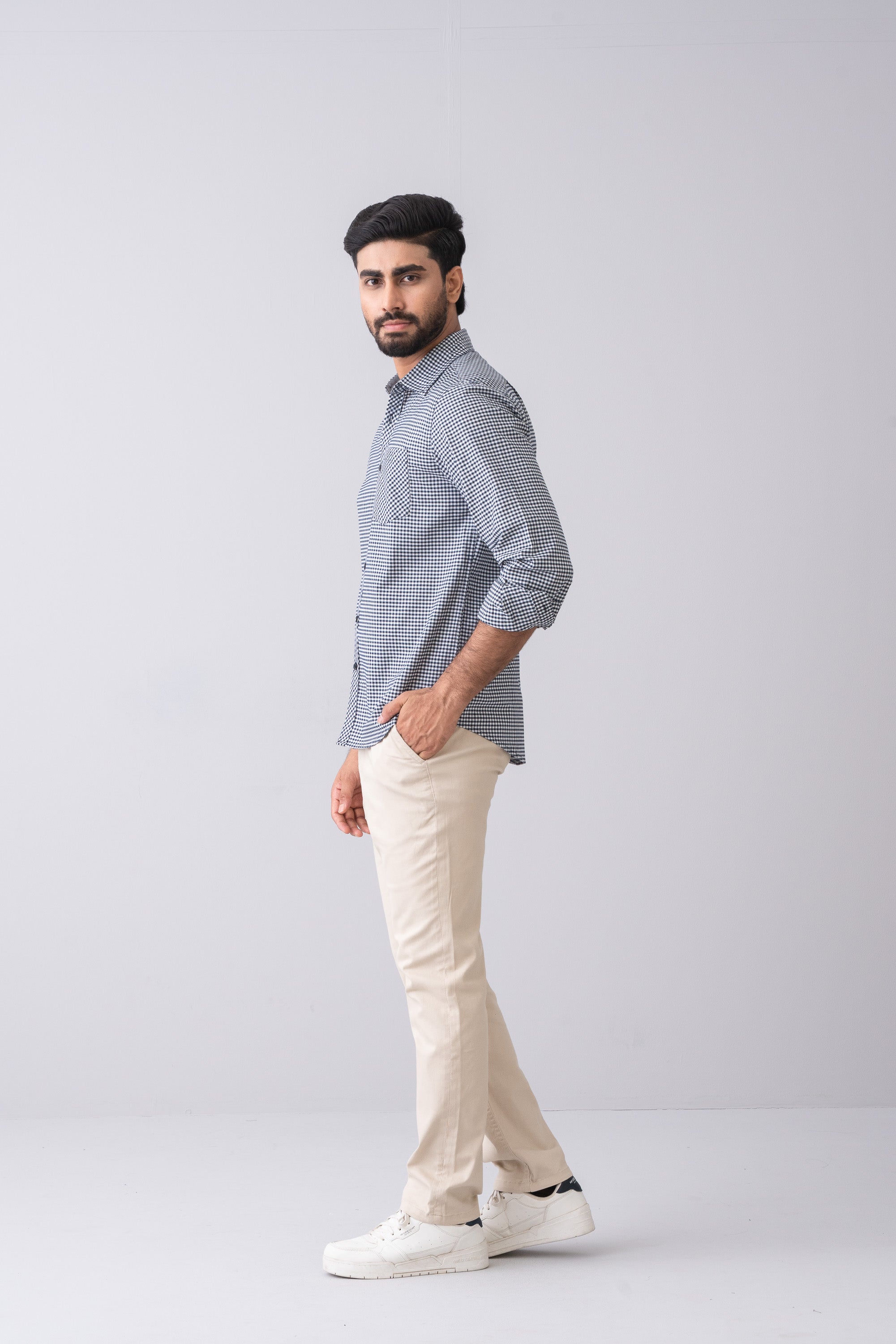 Regular Fit Men’s Casual Shirt, long sleeve shirt, patch placket with DTM button ,classic collar.