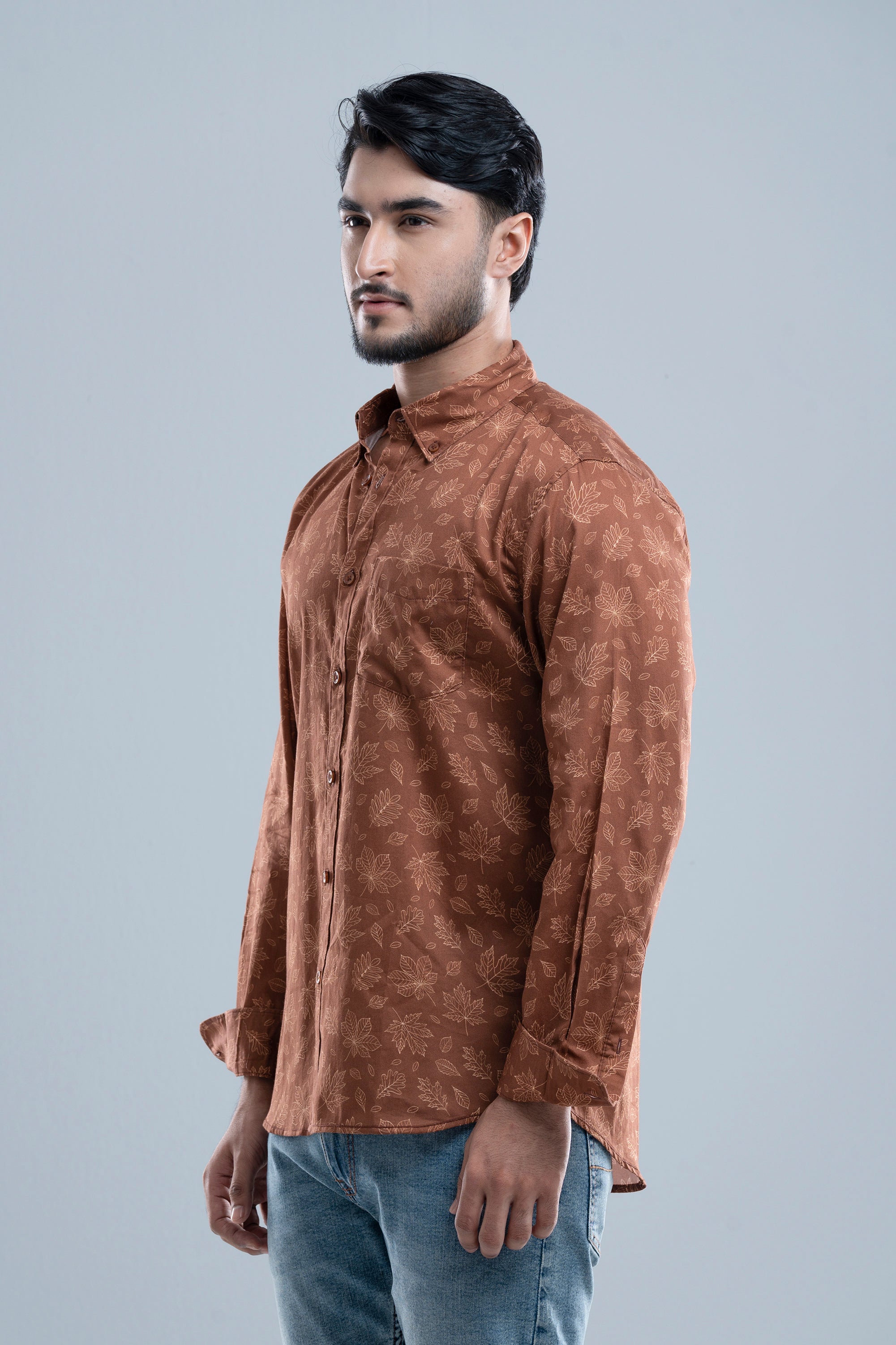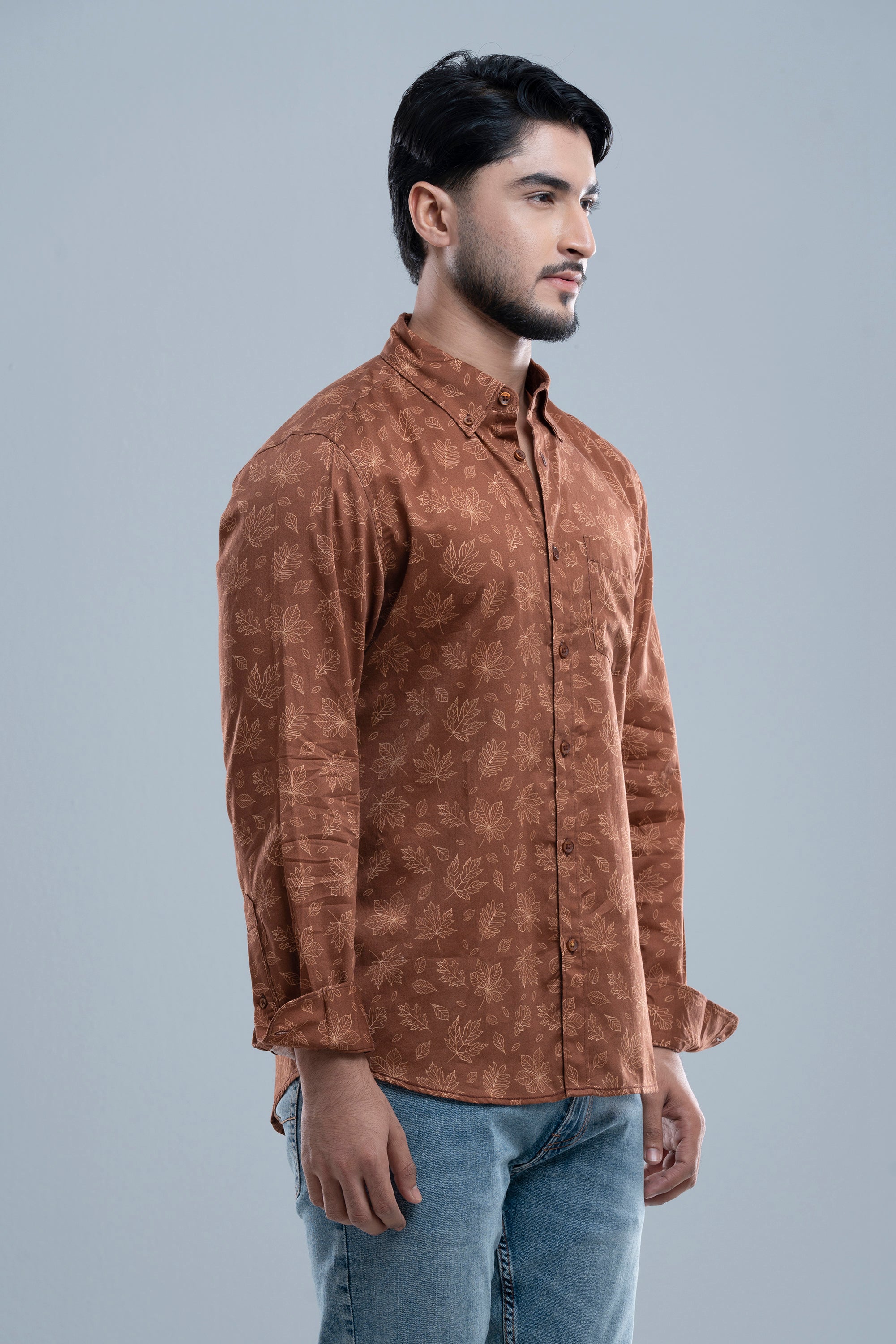 Slim Fit Men’s Casual Shirt. Long sleeve and printed shirt, Box placket with DTM button, button down collar.
